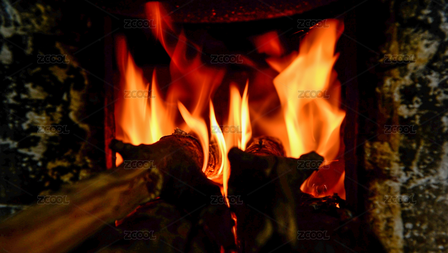 农村土灶燃烧的火焰特写