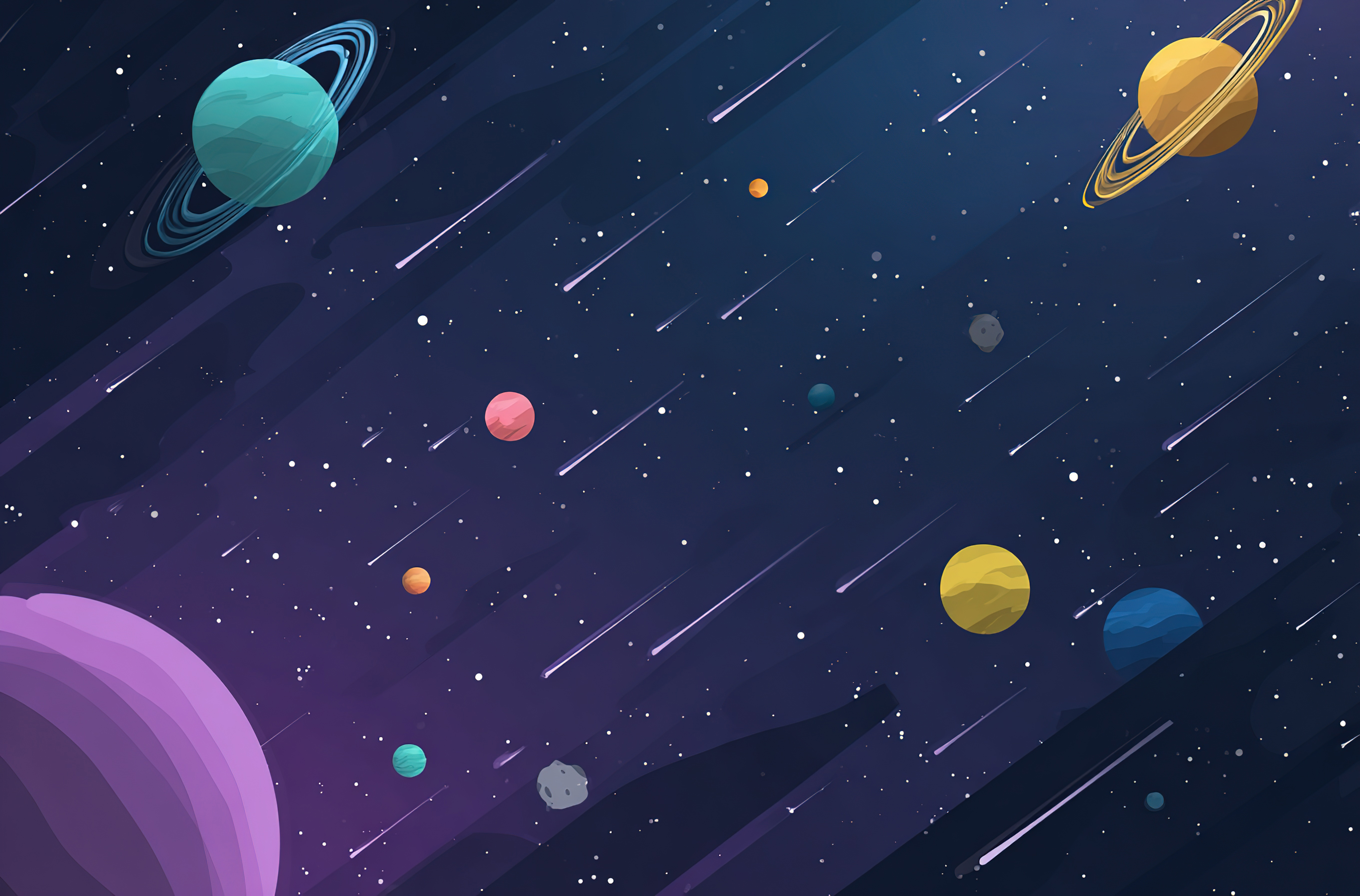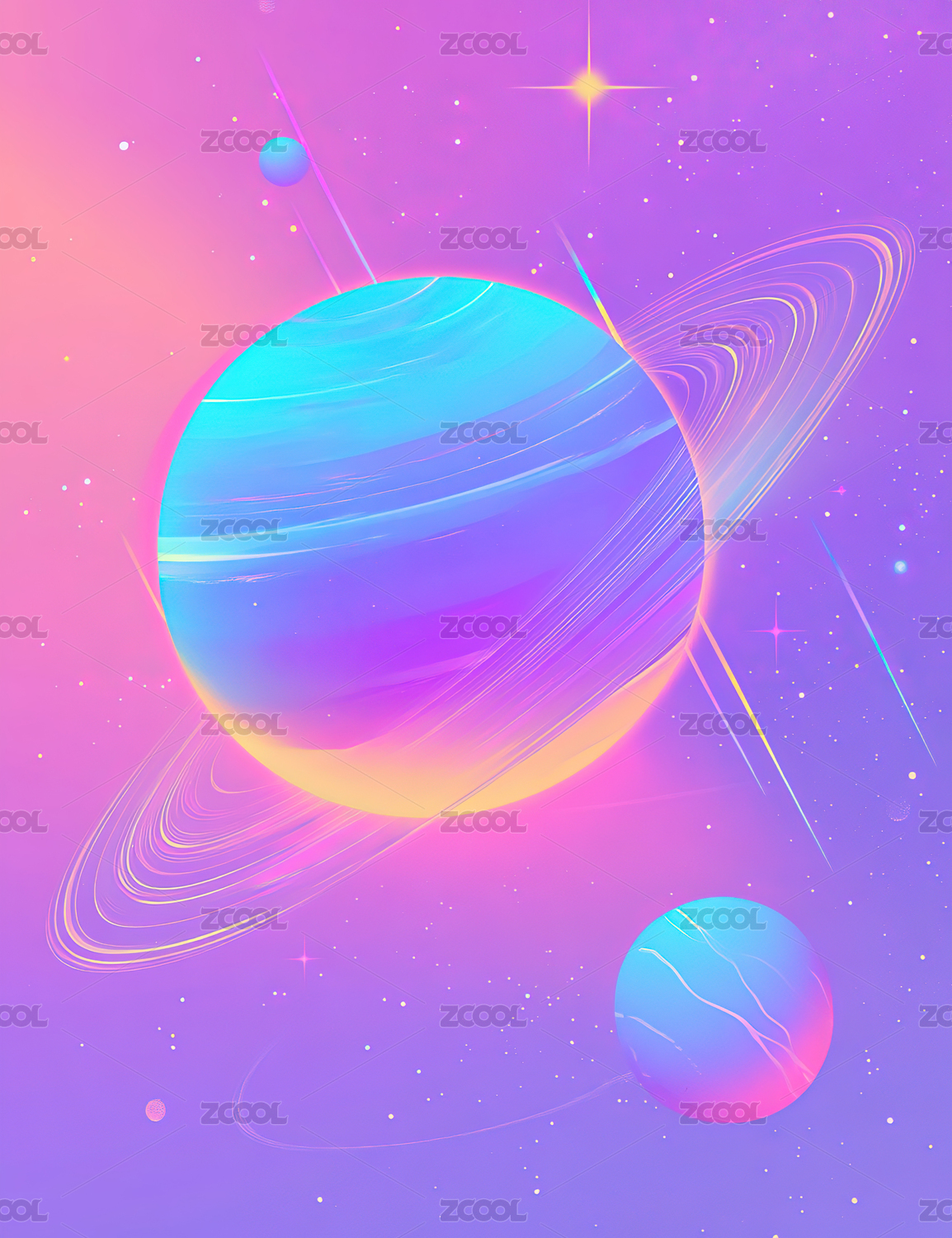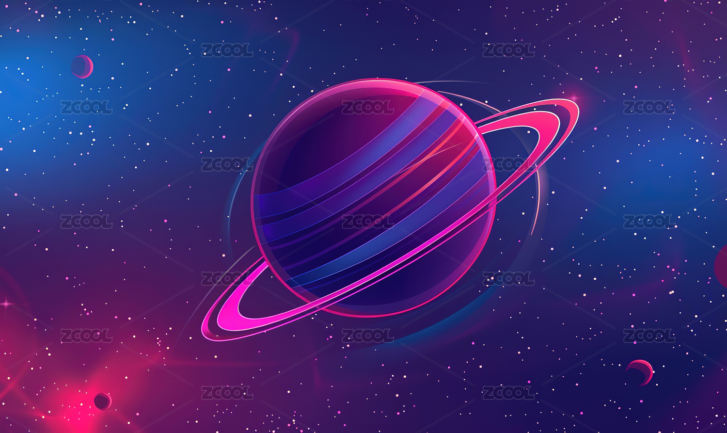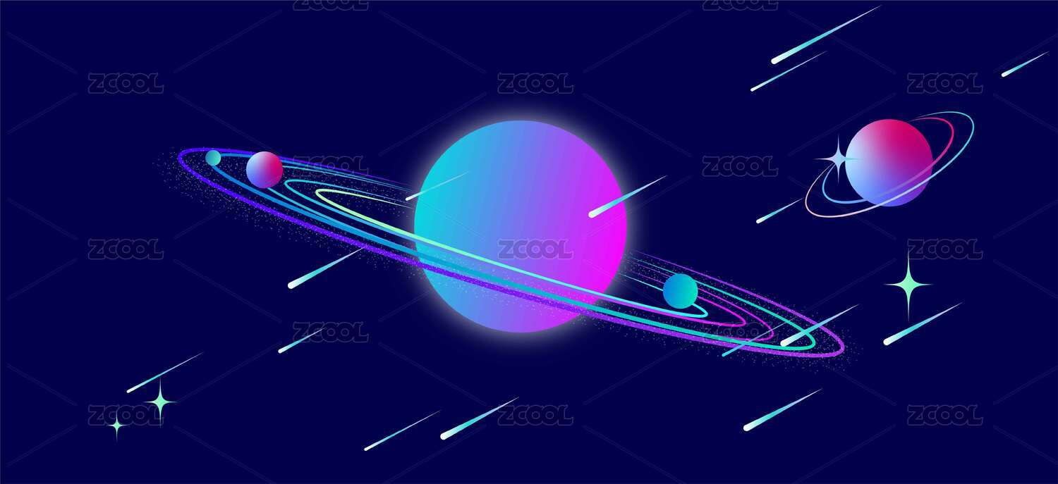 深蓝色背景上渐变星球和太空,卡通行星背景