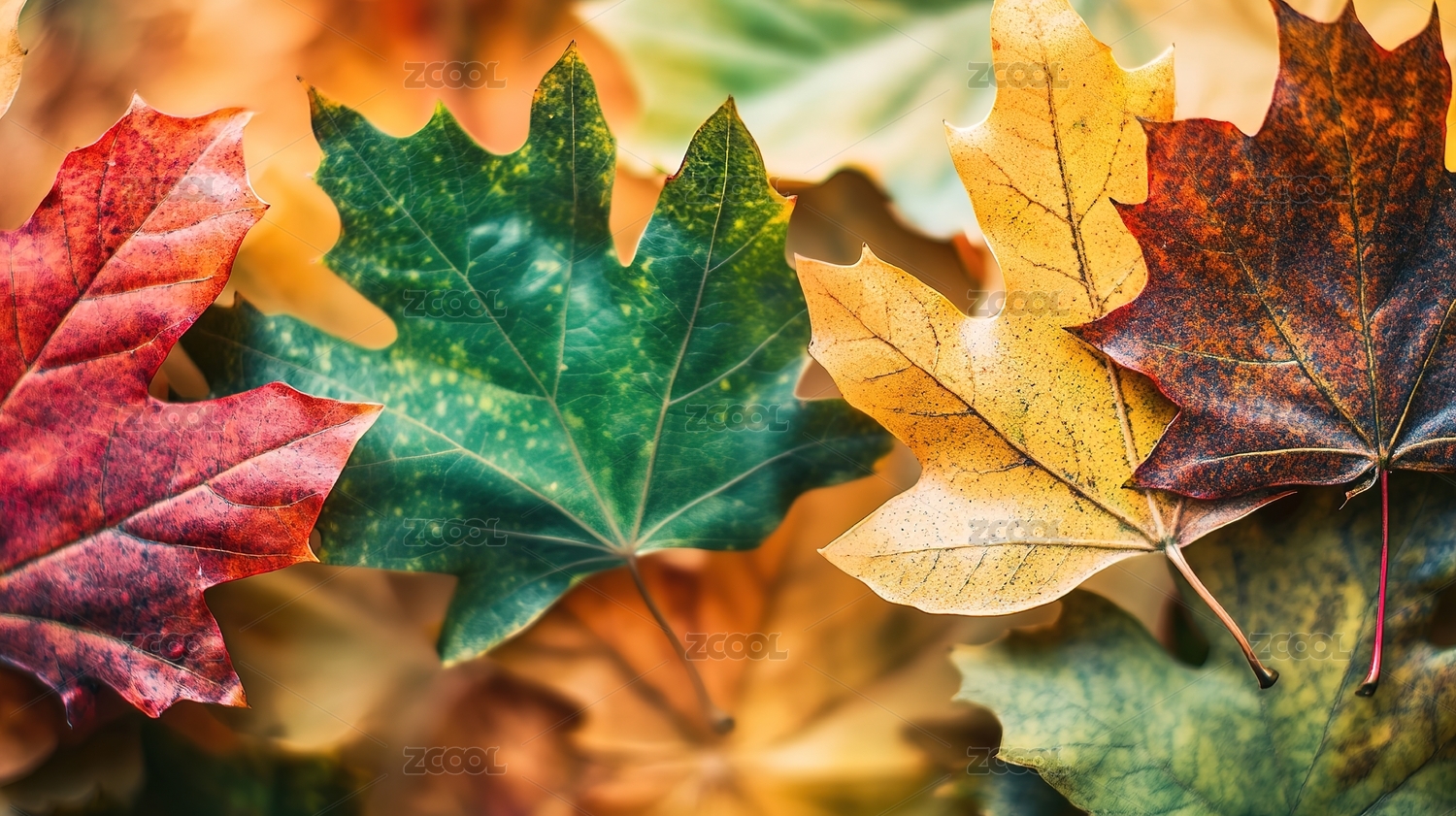 多彩秋叶层叠呈现自然美学的装饰视觉