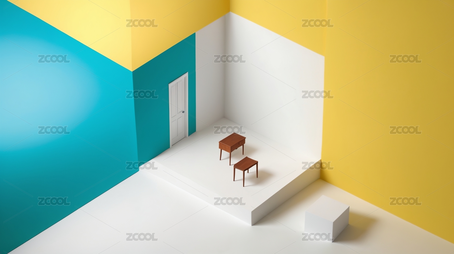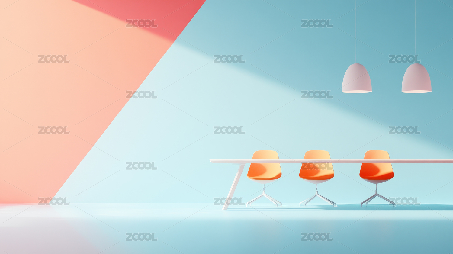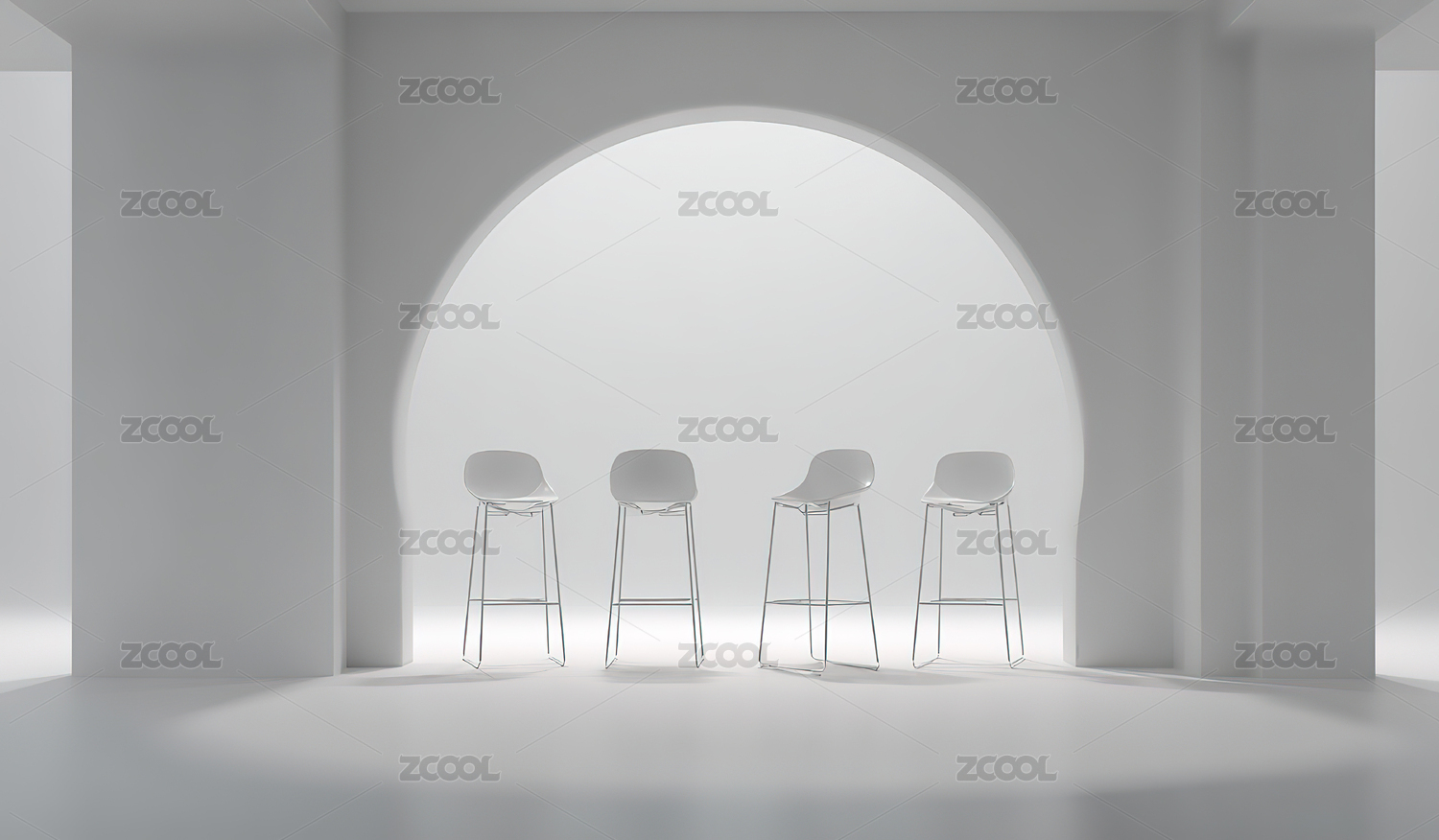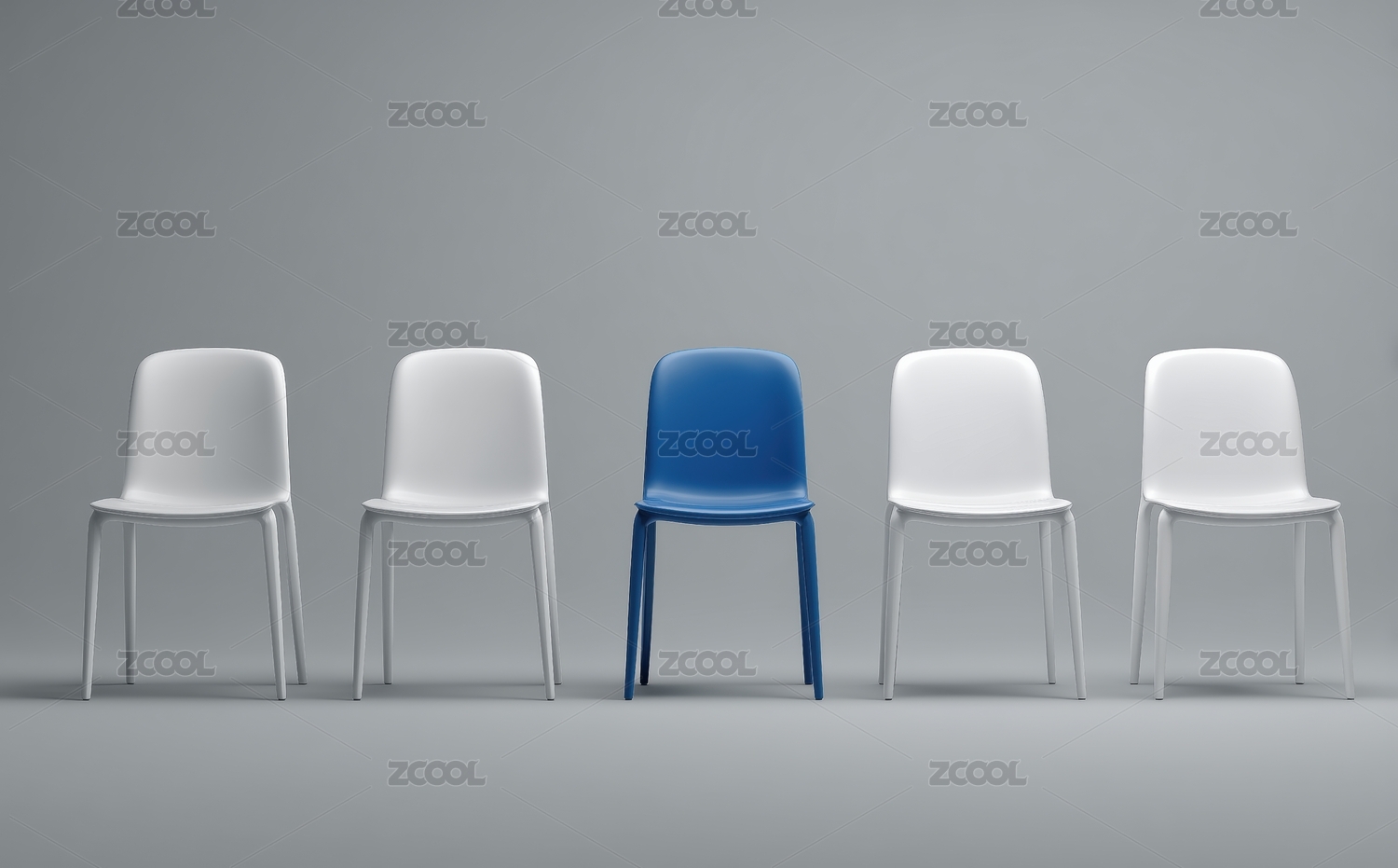 室内渲染场景椅子和红色墙面白色地板进行招聘求职邀请