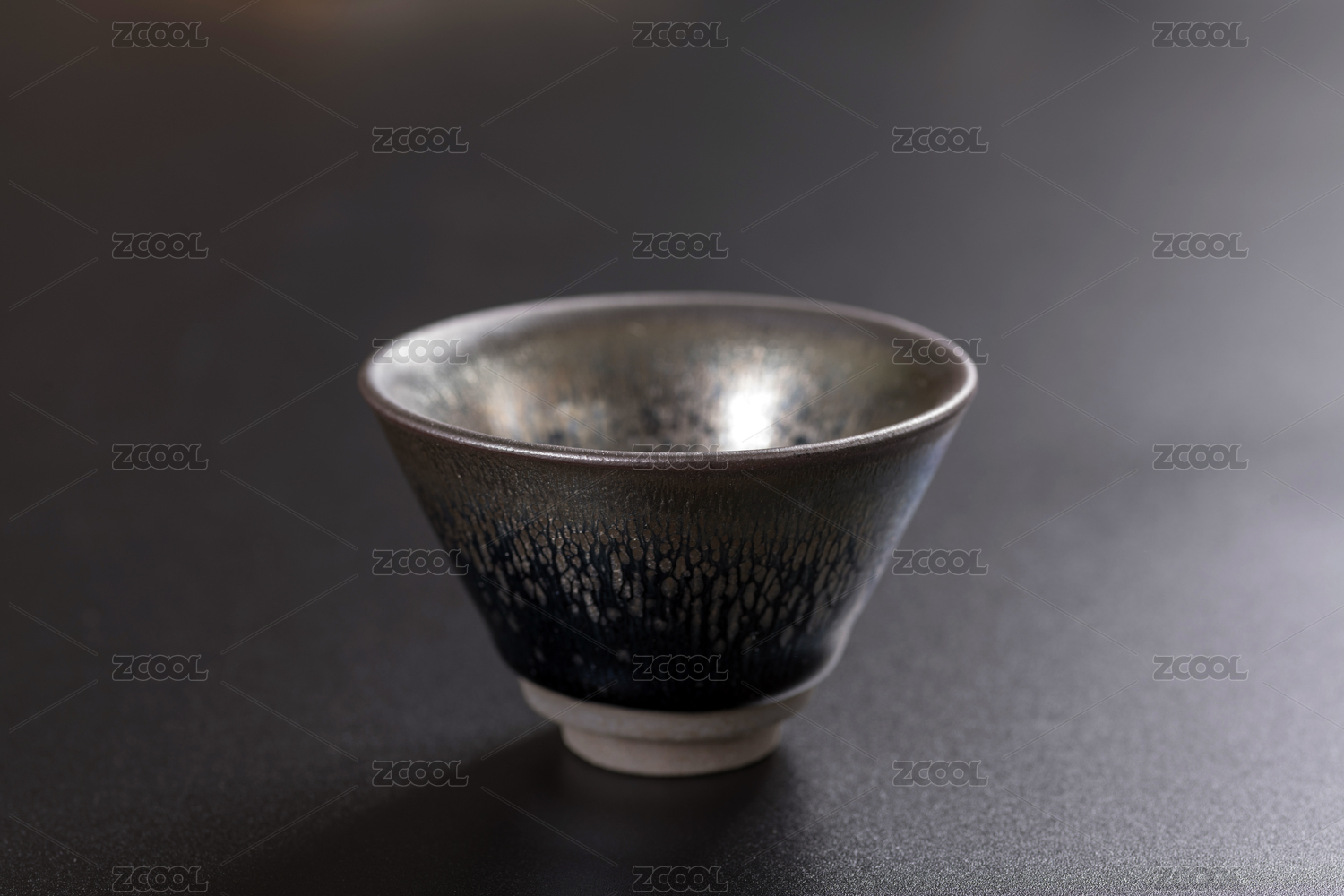 黑色背景下精美的中国福建建盏茶杯