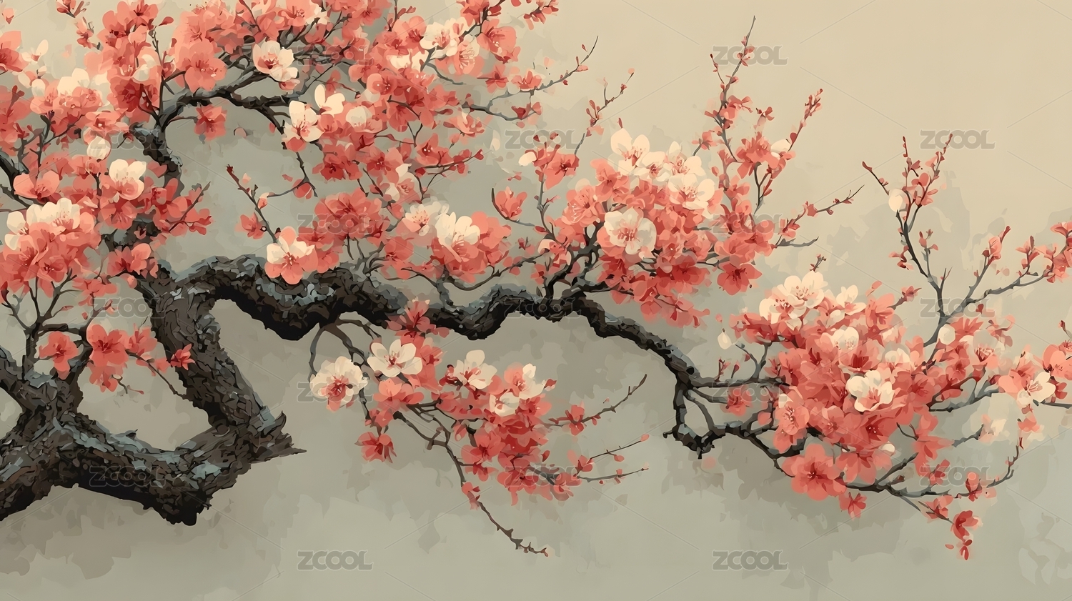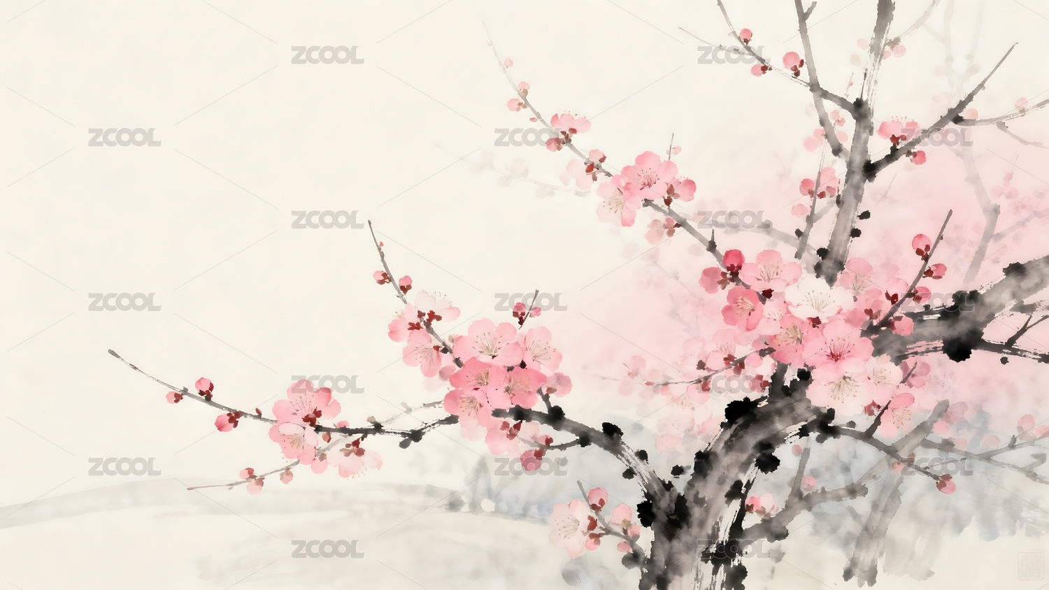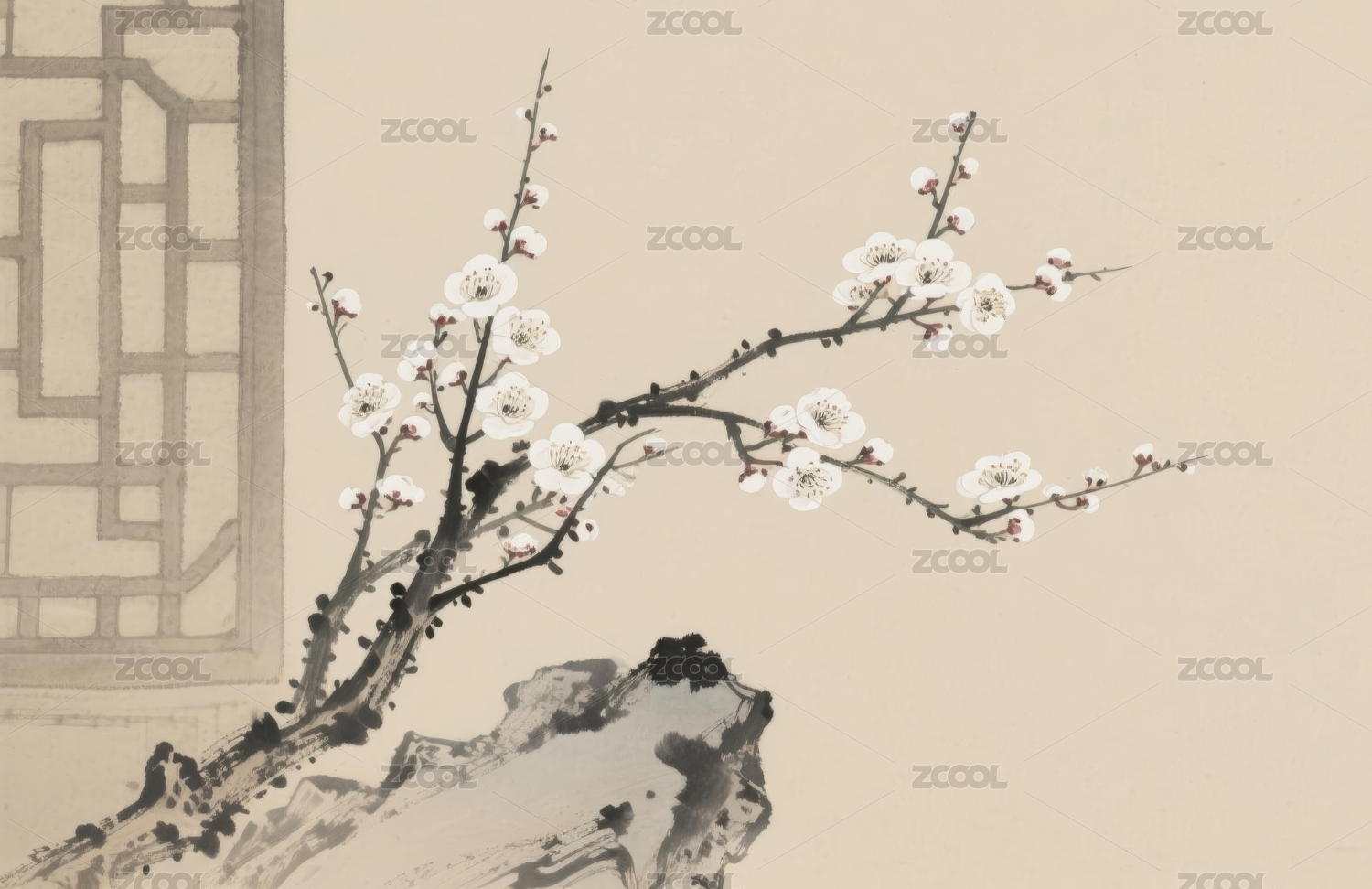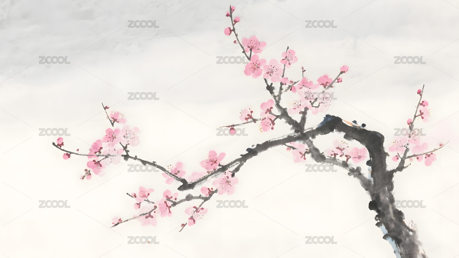中国风,古建筑,春天,花瓣,卷轴,画卷,祥云,图案,古色古香,传统