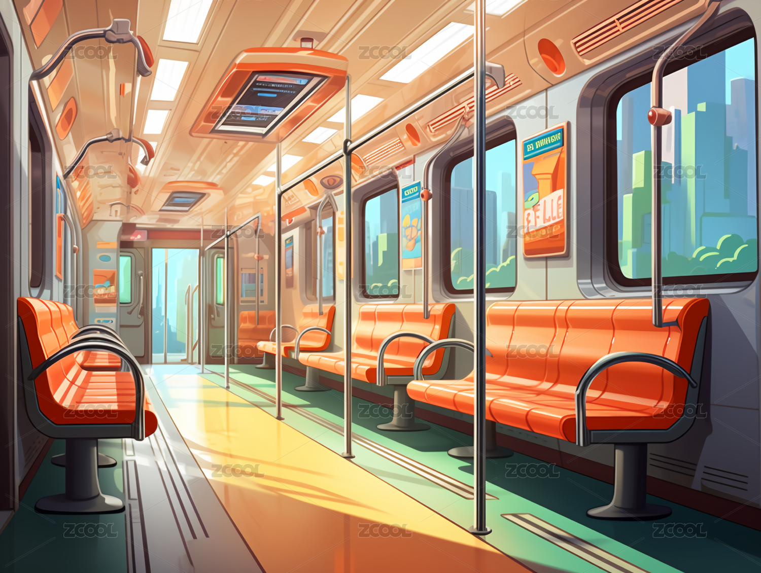 地铁车厢内矢量插画