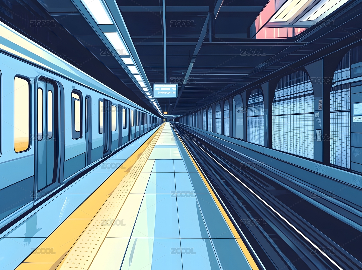 空旷的地铁卡通插画