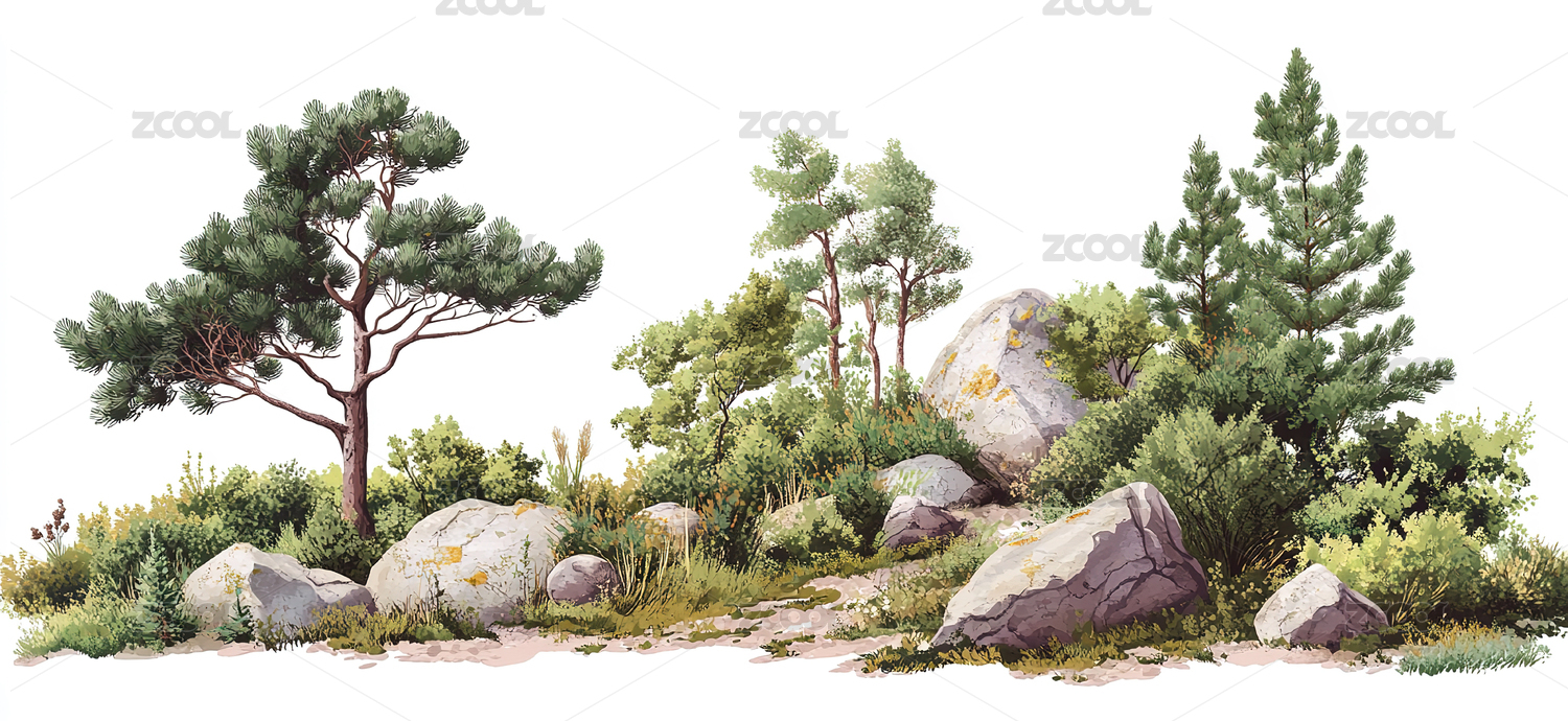 水彩风绿色树木
