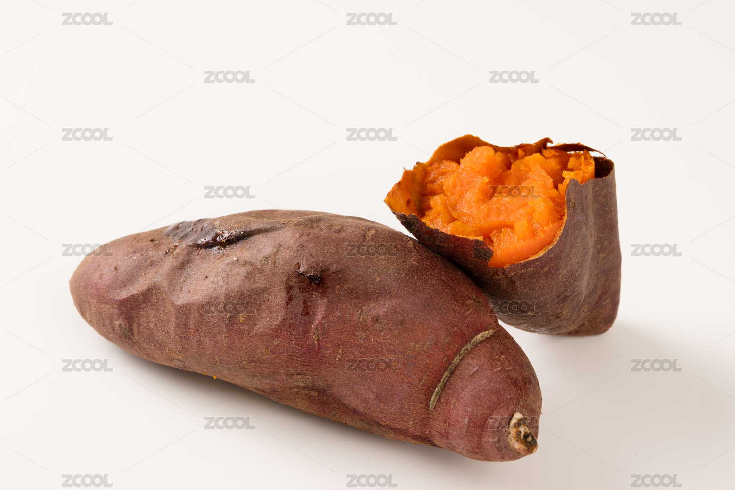 纯白色背景下的新鲜烤地瓜