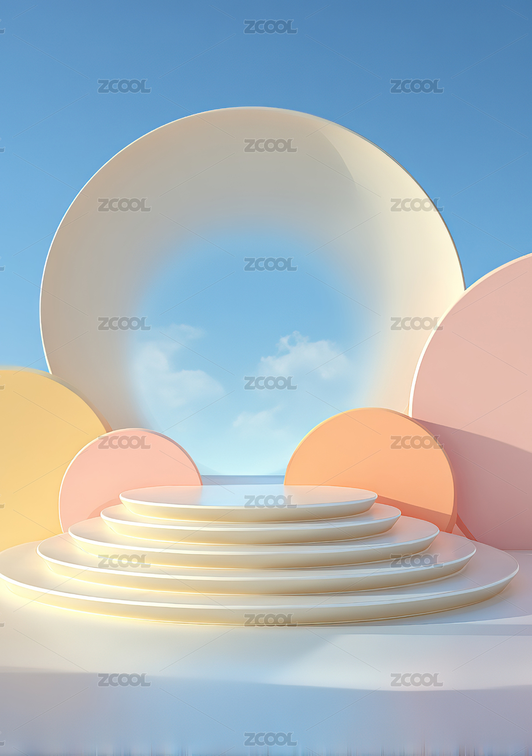 几何阶梯与彩色圆弧背景