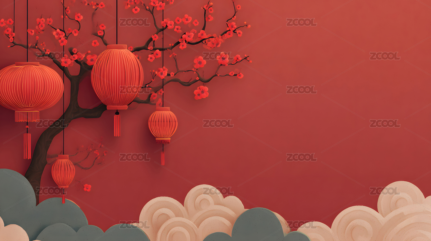 鲜红,庆典,礼灯,灯笼,红包,简约,插画,背景