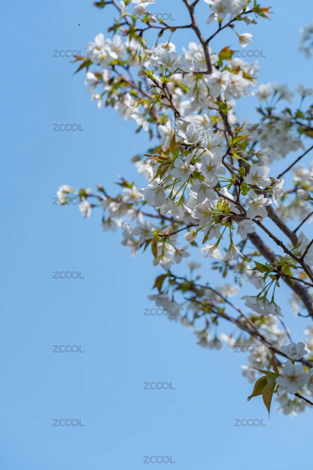 蓝天背景下盛开的梨花