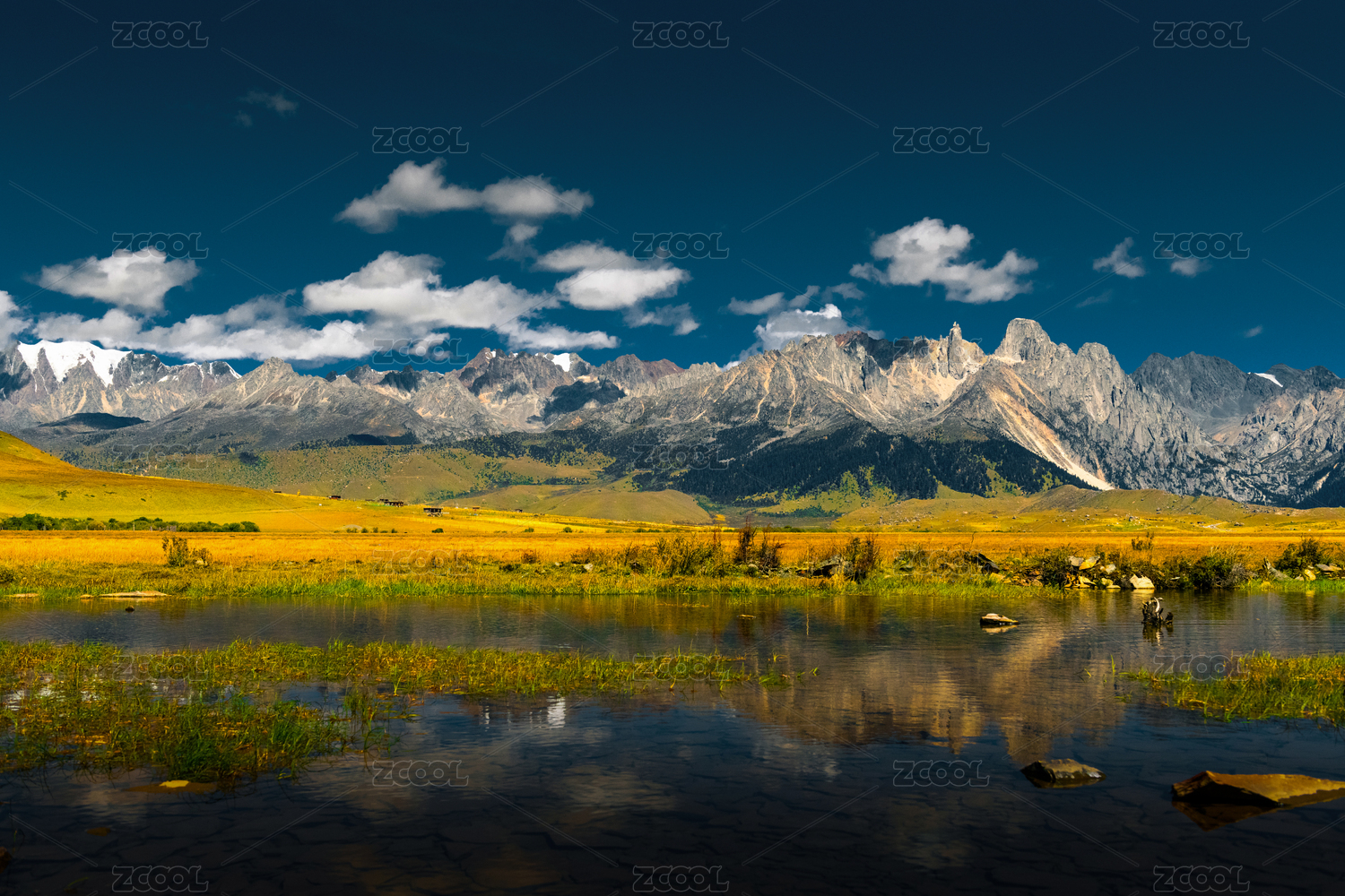 中国四川甘孜州318川藏线措潽沟雪山草地