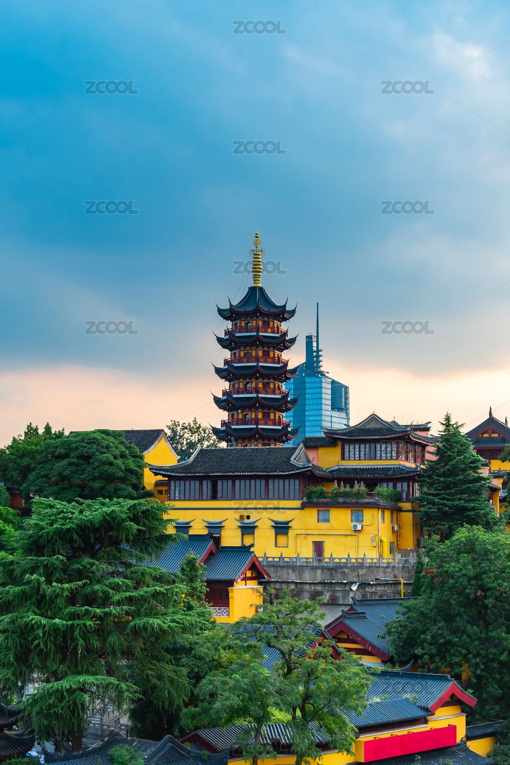 傍晚,天空,晚霞,建筑外部,城市,药师塔,建筑,著名景点,佛教,古鸡鸣寺