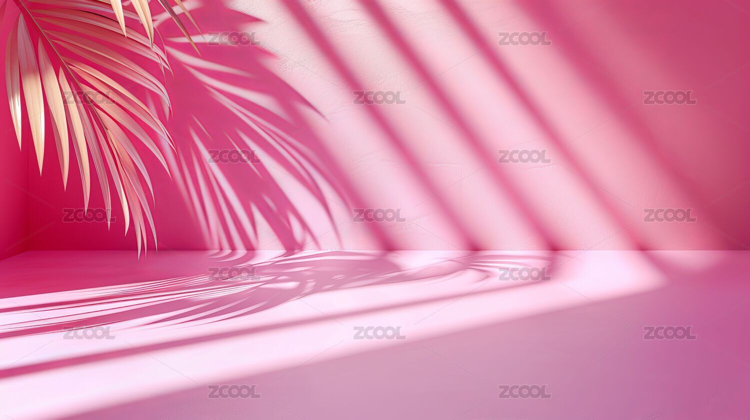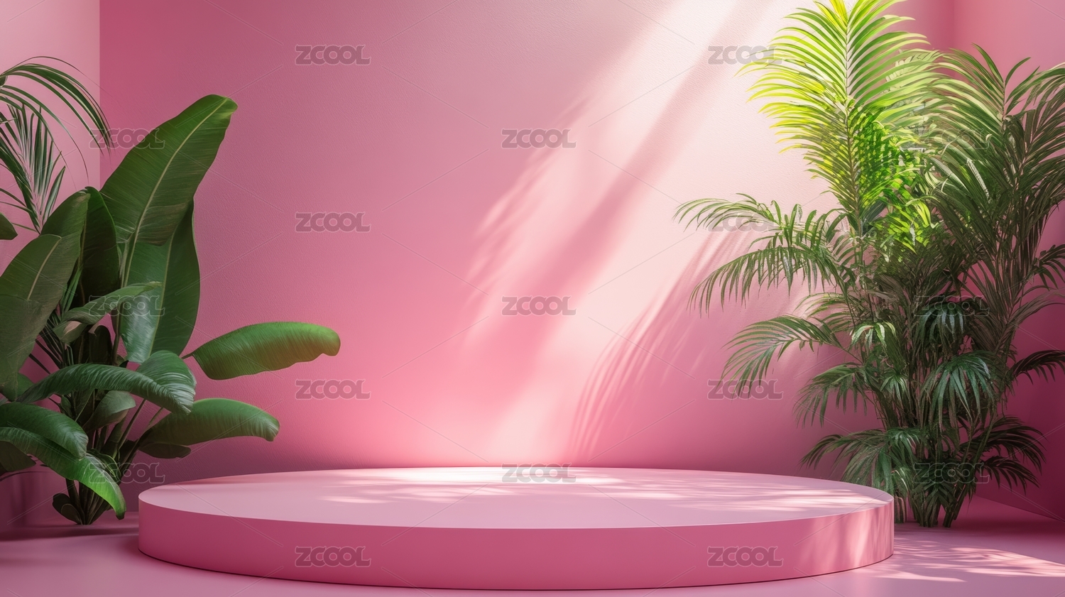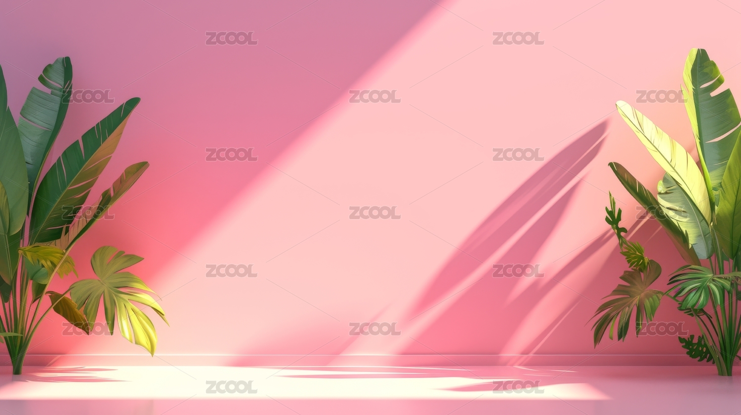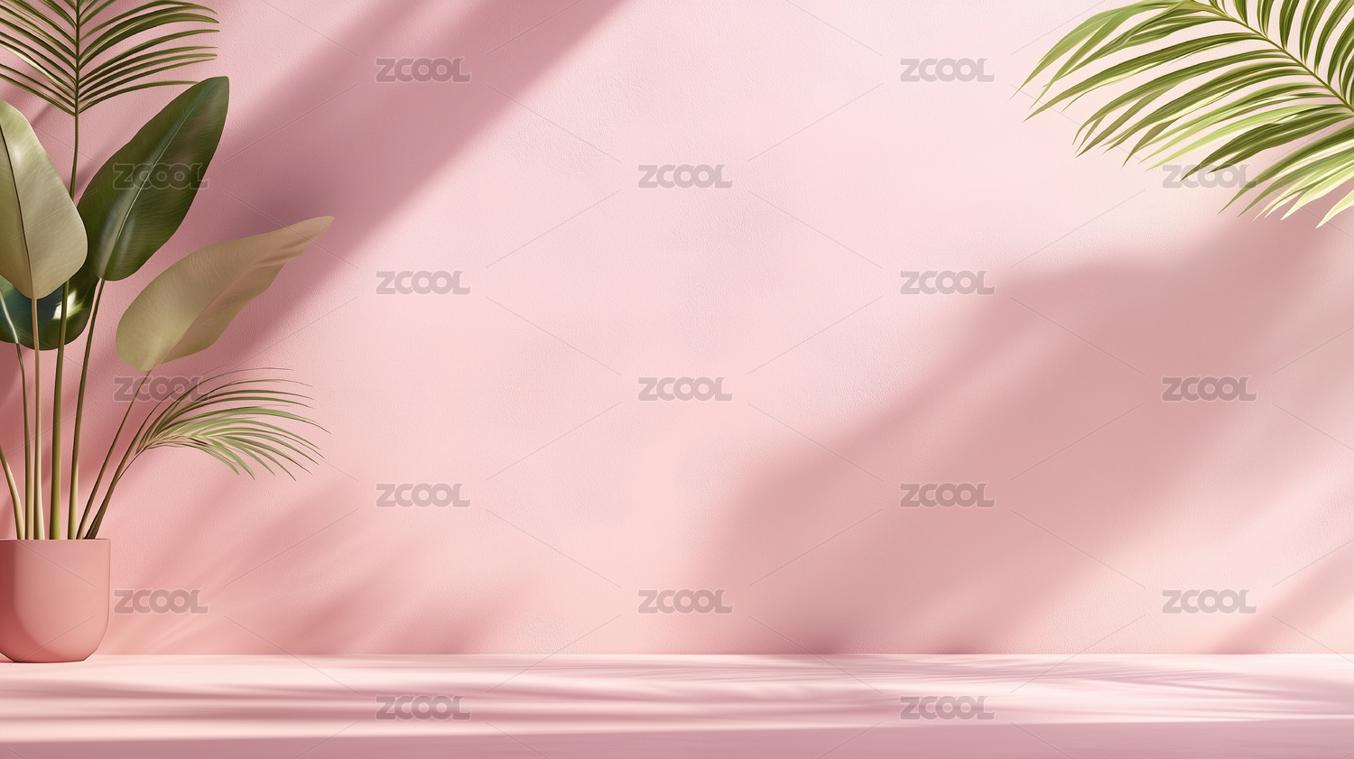 粉色背景下的绿植光影