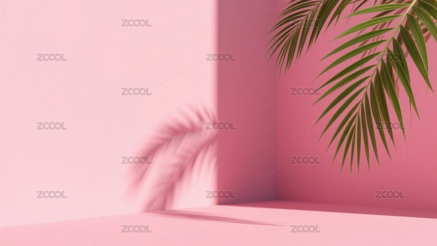 粉色背景与绿叶的光影艺术