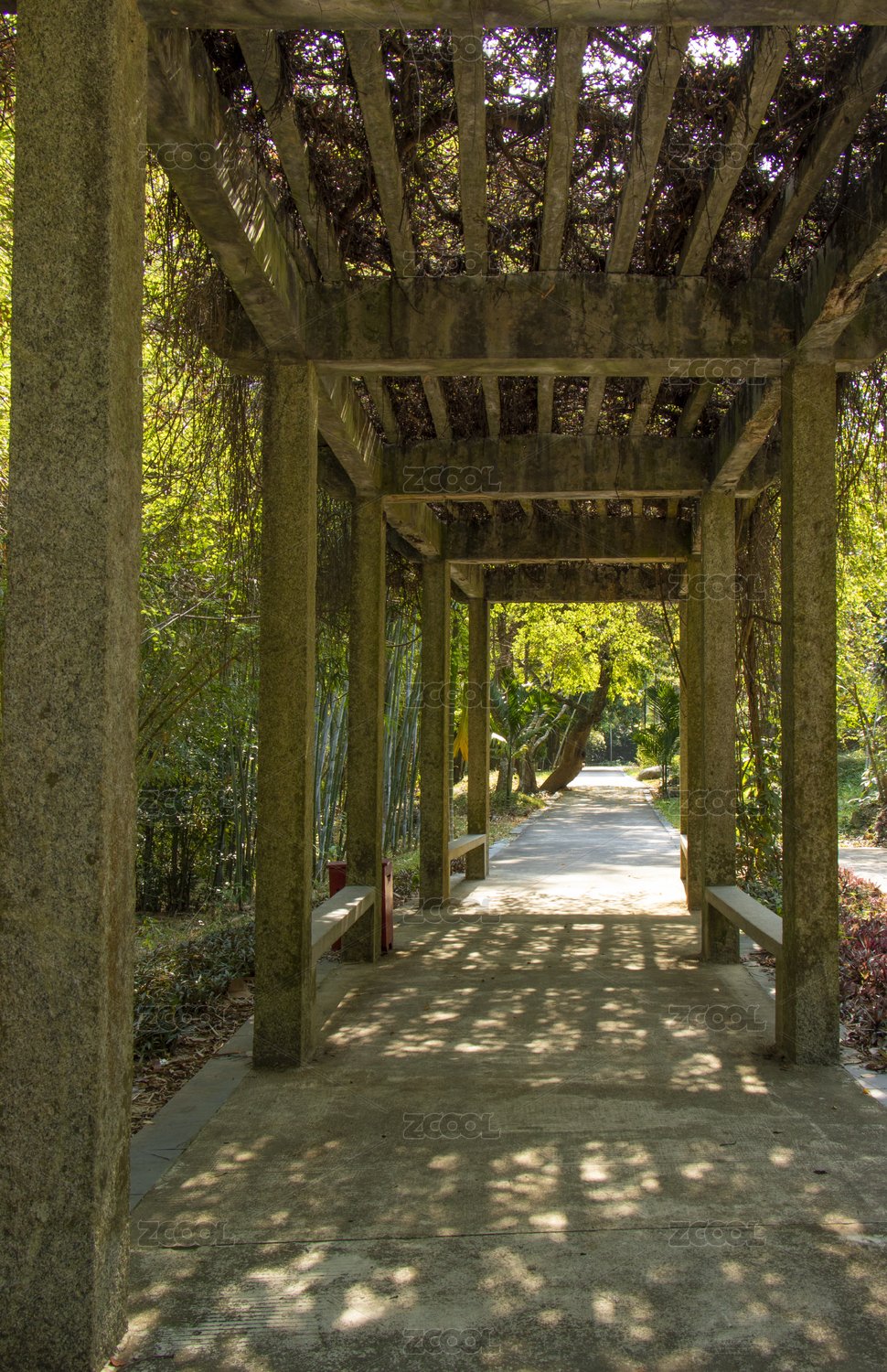 中国海南儋州热带植物园爬满植物的走廊