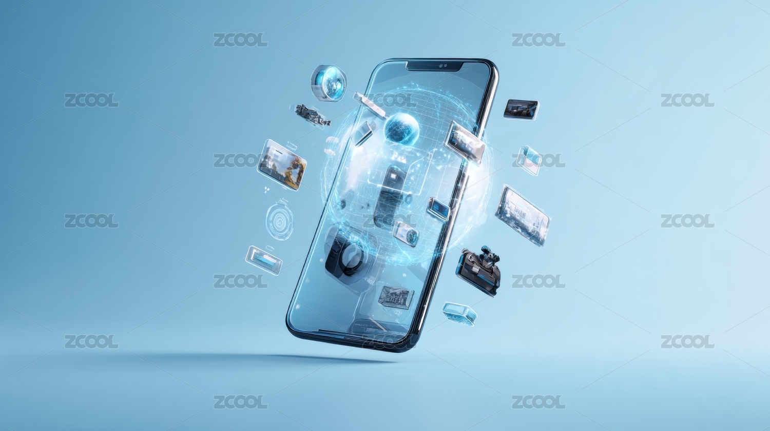 智能手机与数据元素悬浮展示