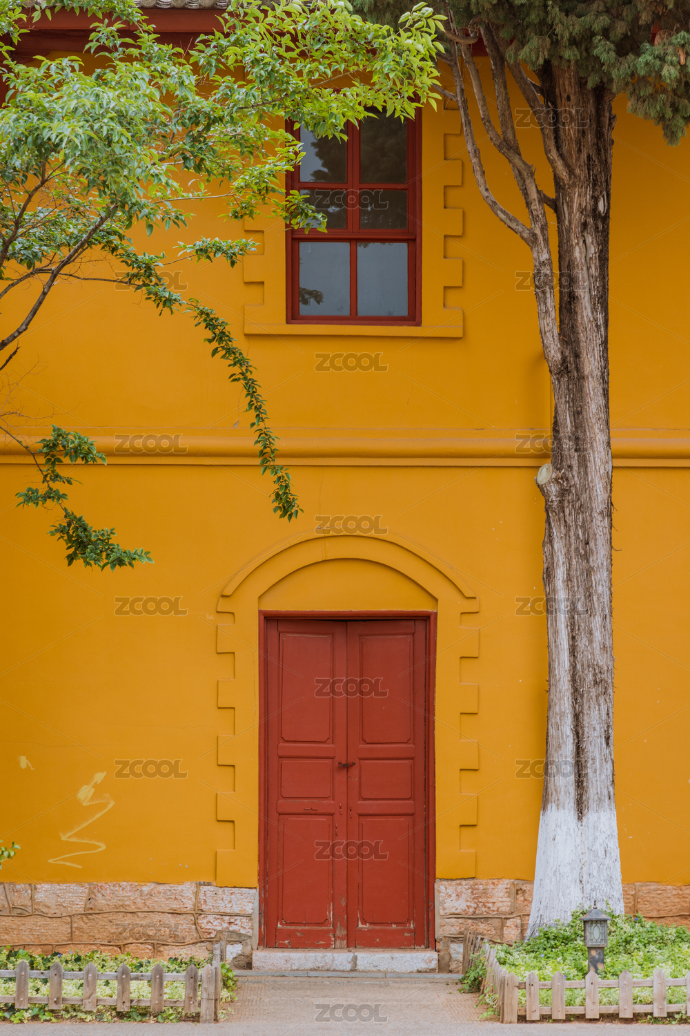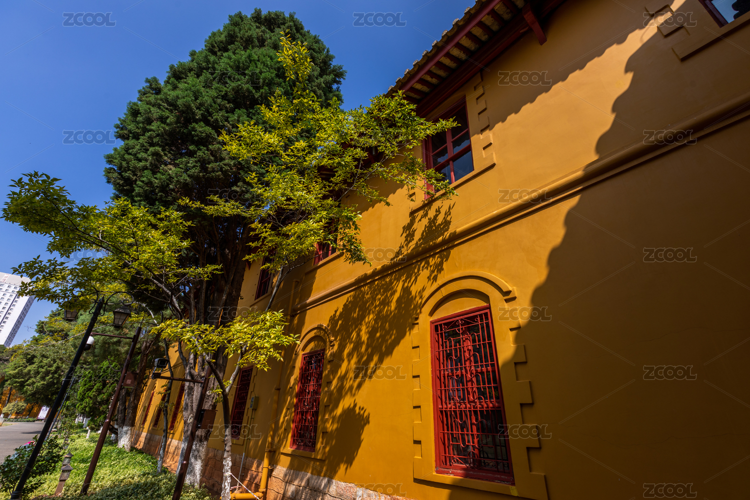 中国云南陆军讲武堂的黄墙,红窗,光影