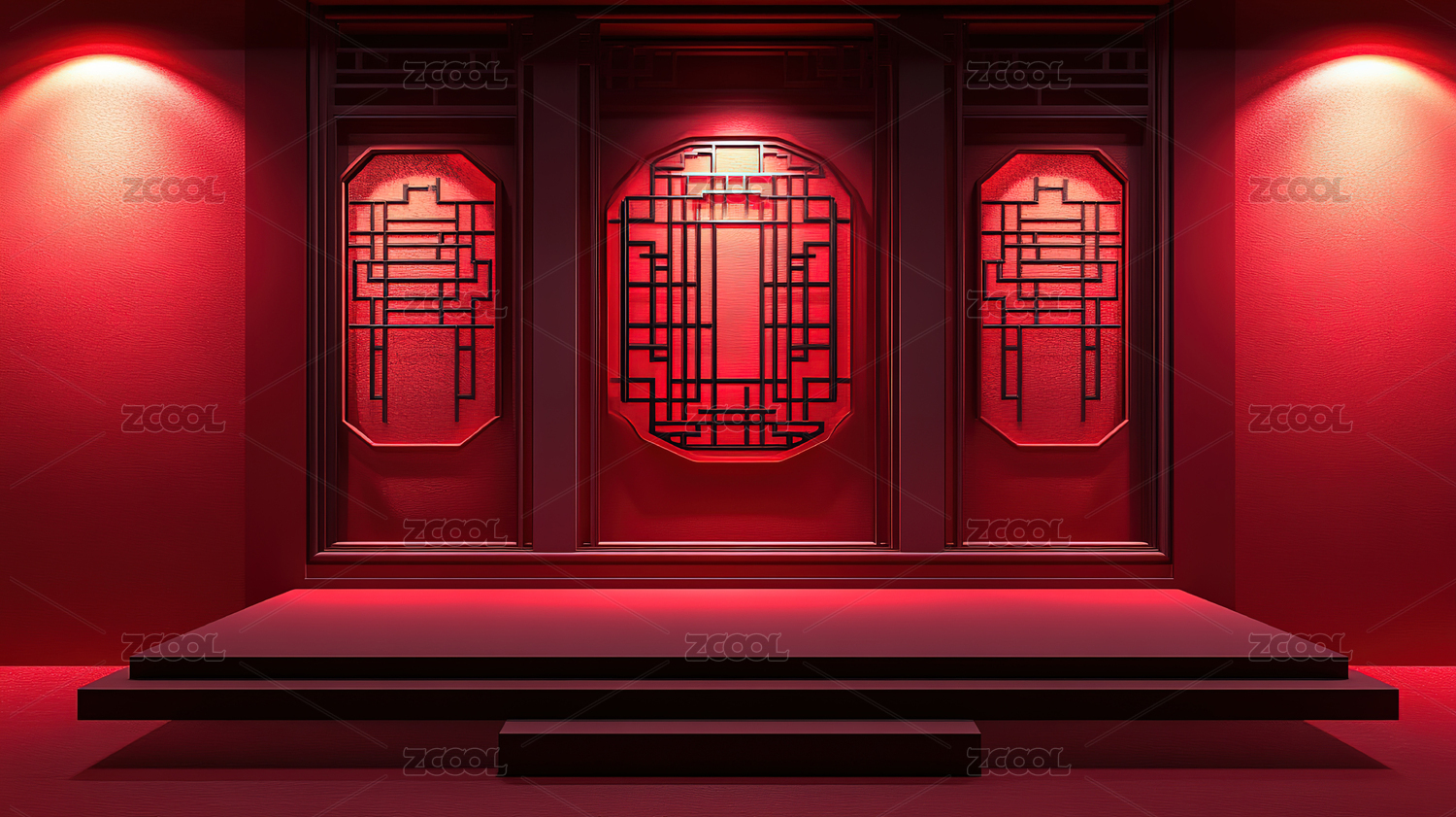 中国风红色展台背景图