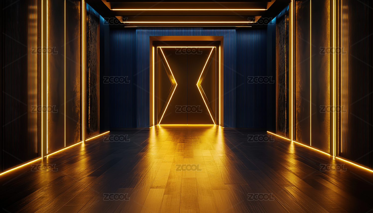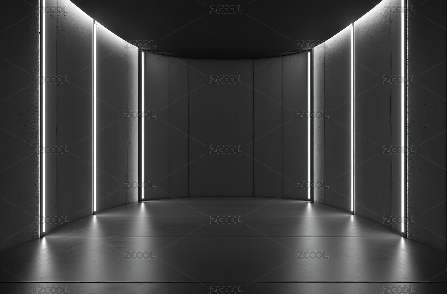 黑金现代几何建筑空间平台3D渲染抽象背景