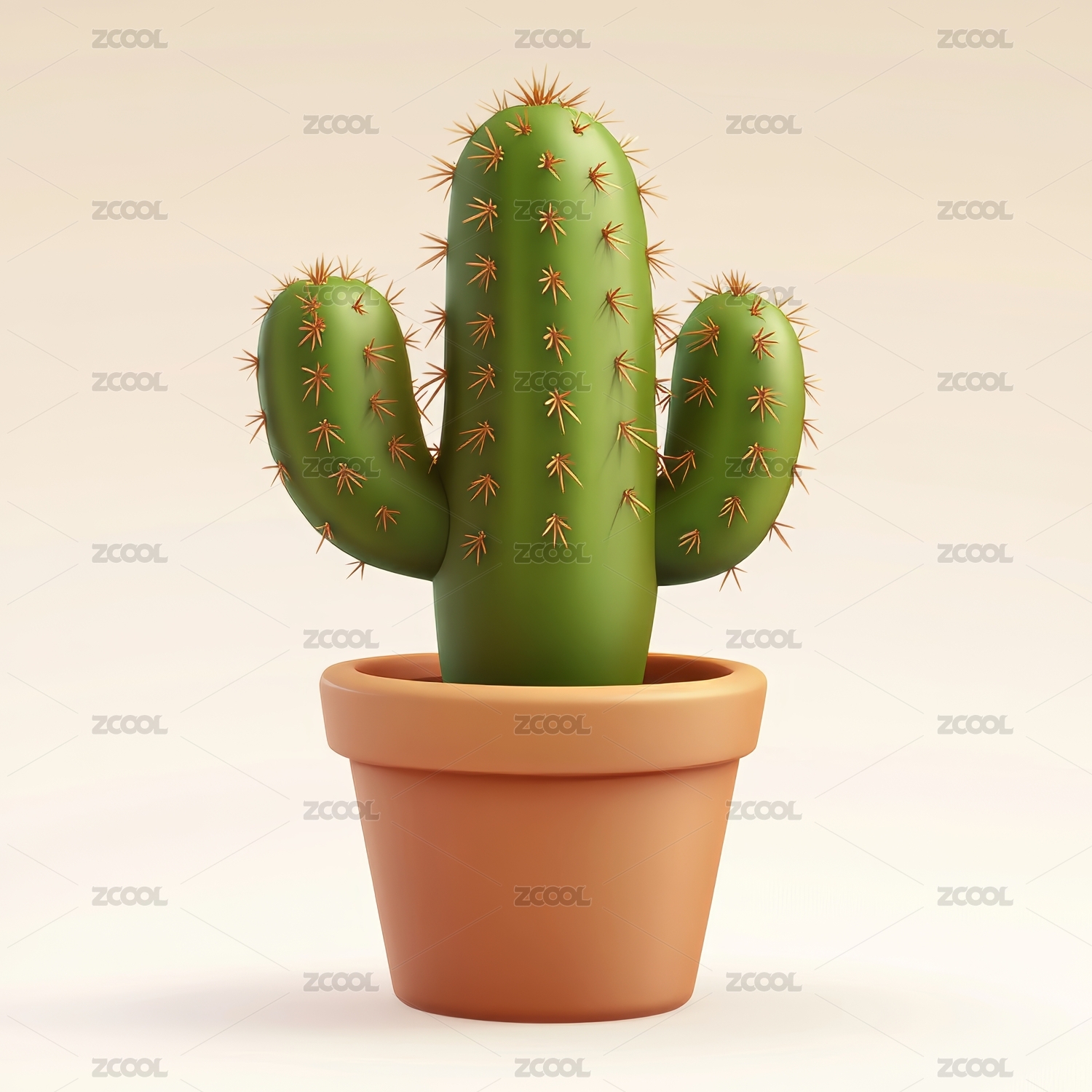 仙人球盆栽三维插画