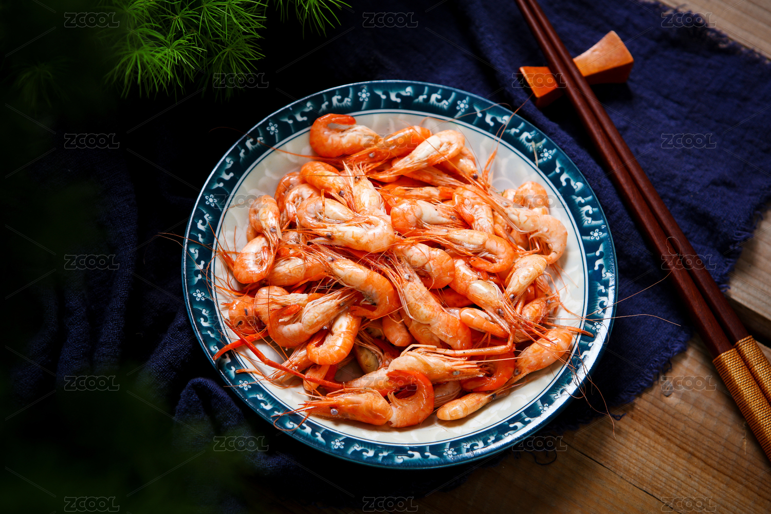 装在碟子里的美味海鲜食材河虾