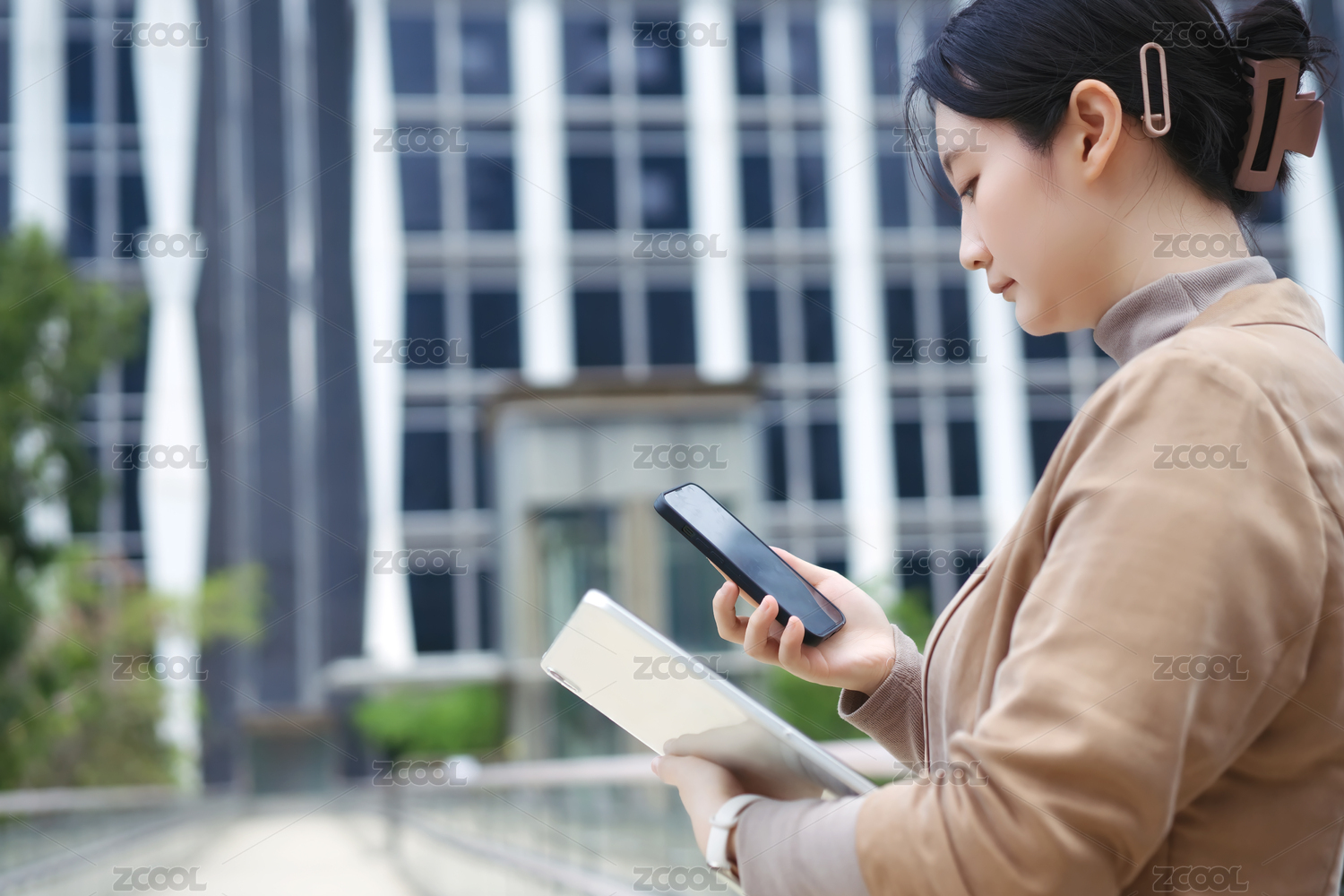 户外办公的商务女士