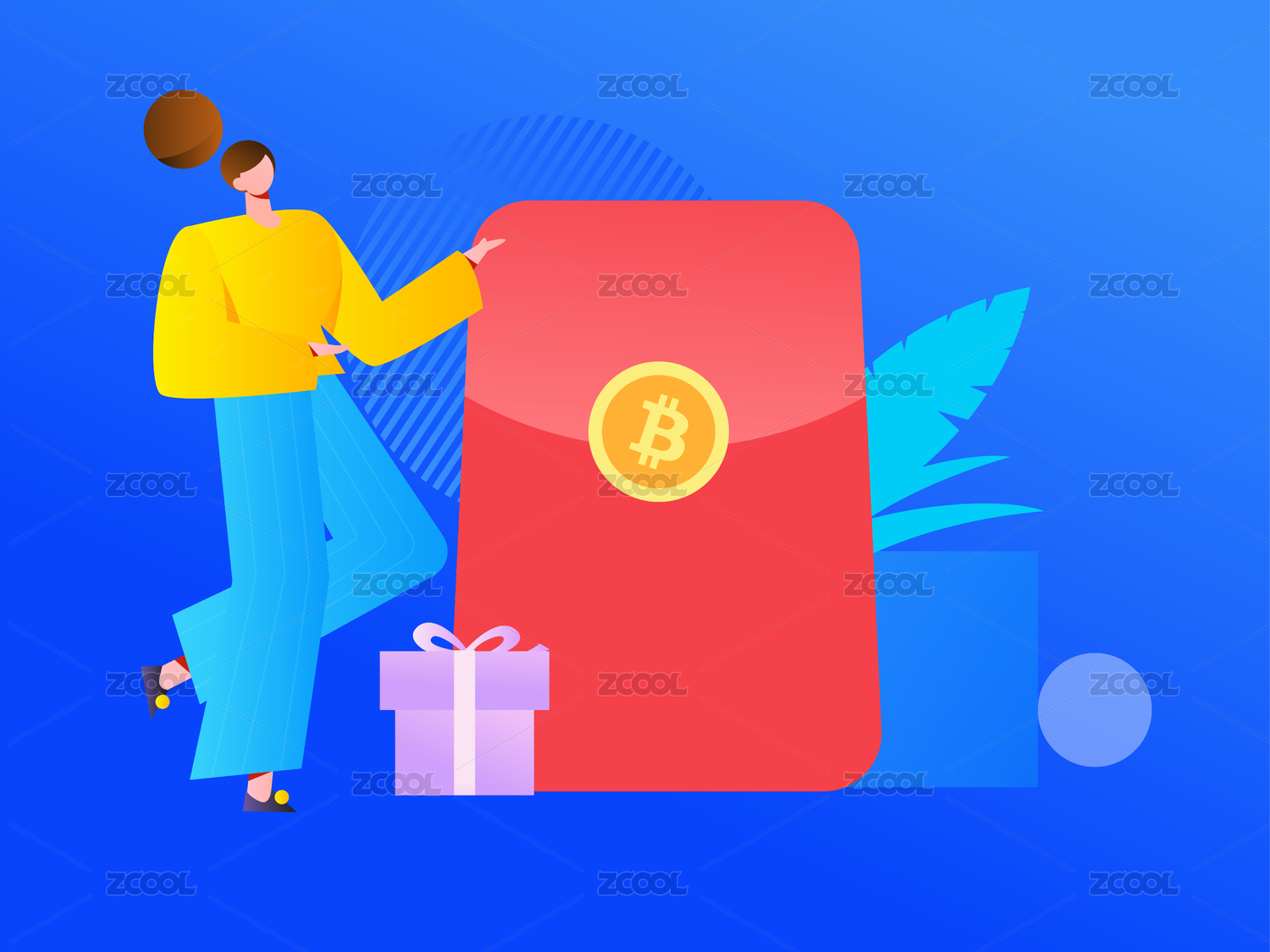 比特币邀请好友获得礼物红包返现奖励扁平插画
