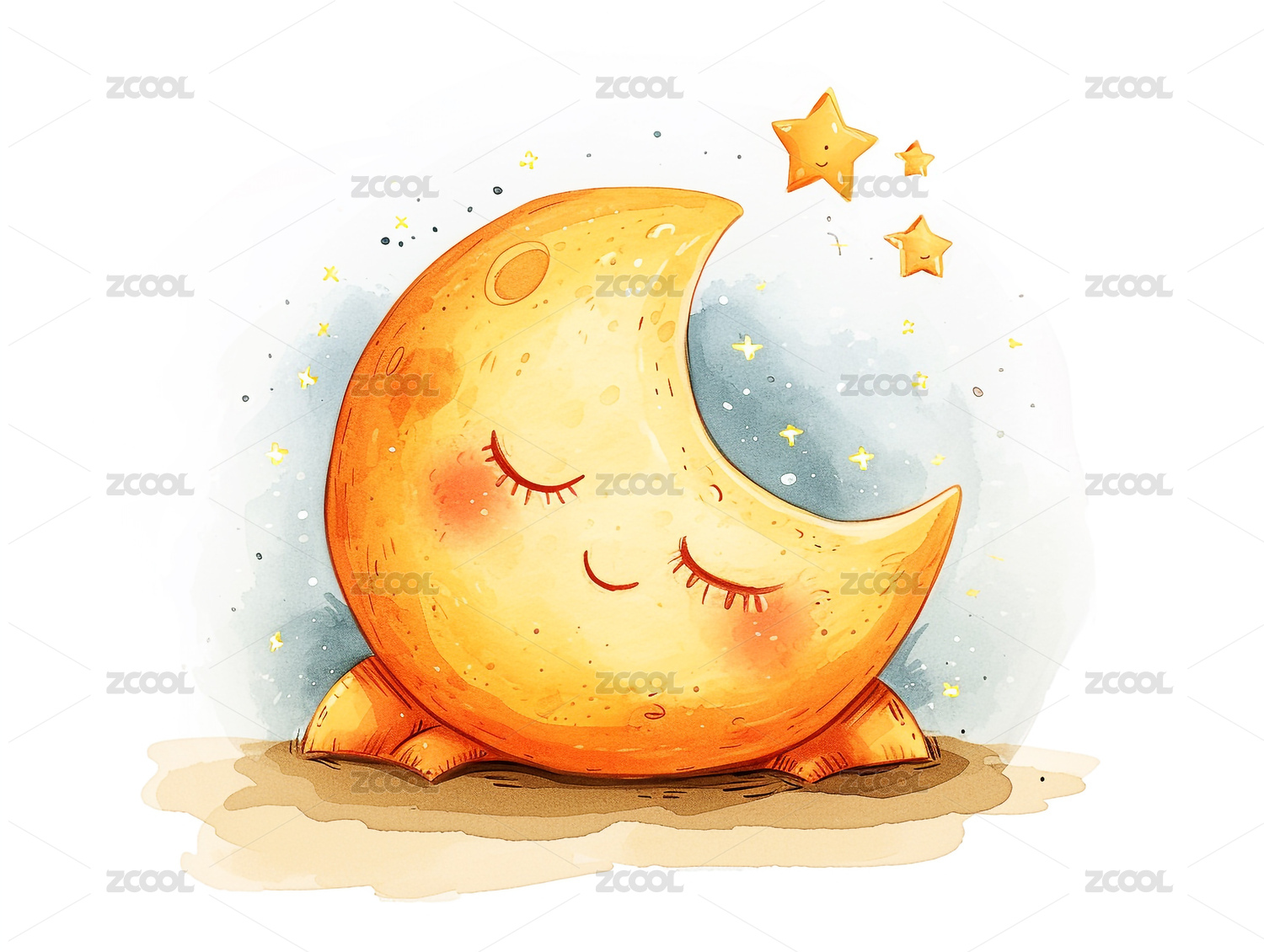 月亮,月,月球,月儿,弯月,月牙,卡通,漫画,拟人,拟人化