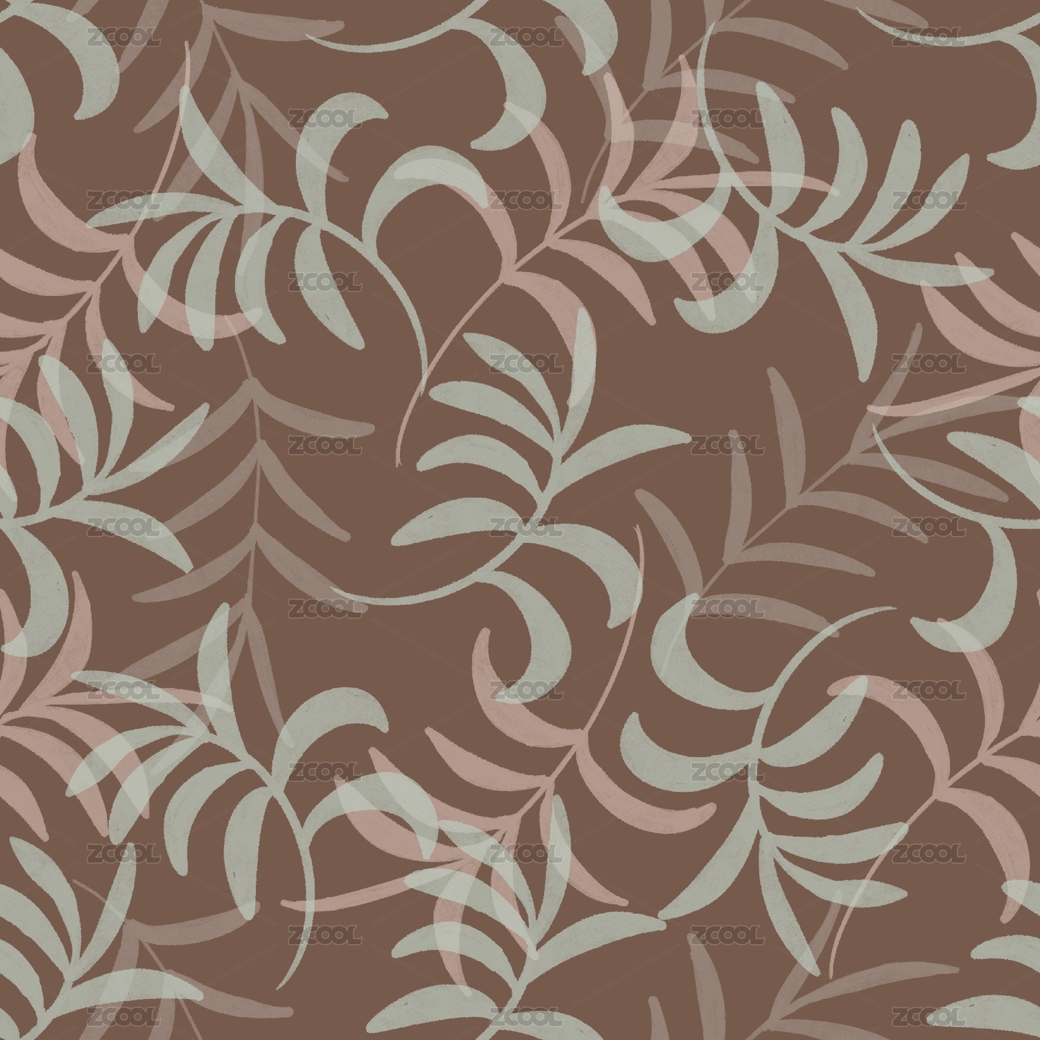 现代抽象几何简约绿植剪影家纺包装印花图案