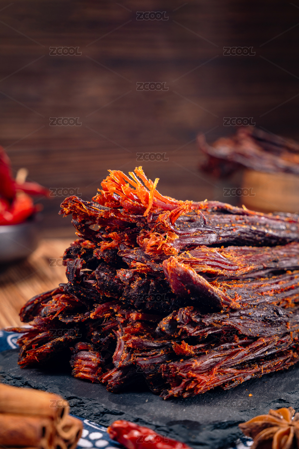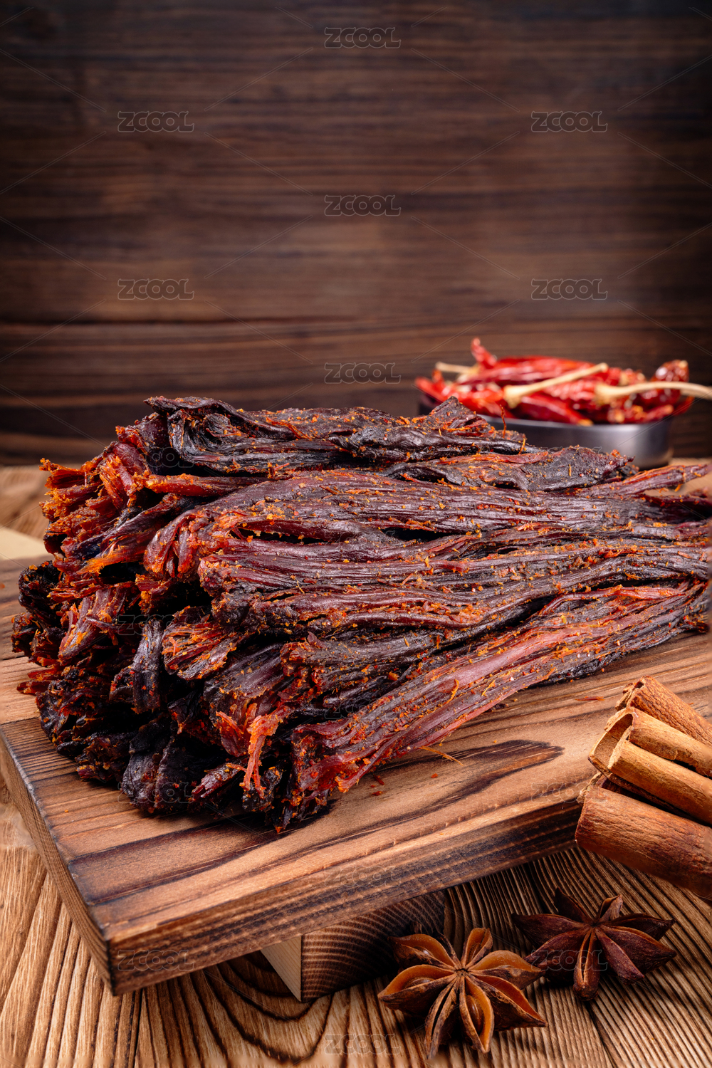 木板上的猪肉干巴