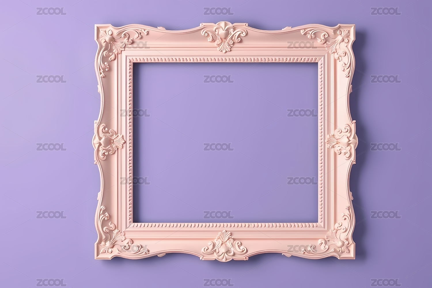 淡粉色雕花相框置于紫色背景