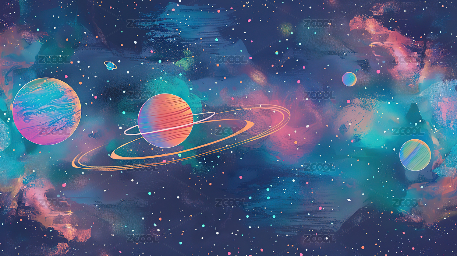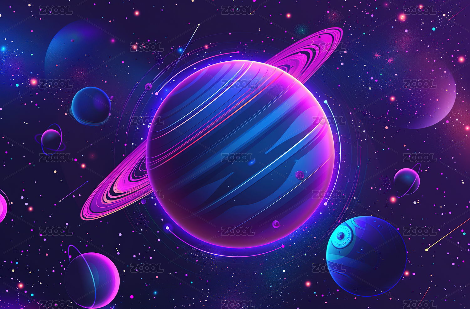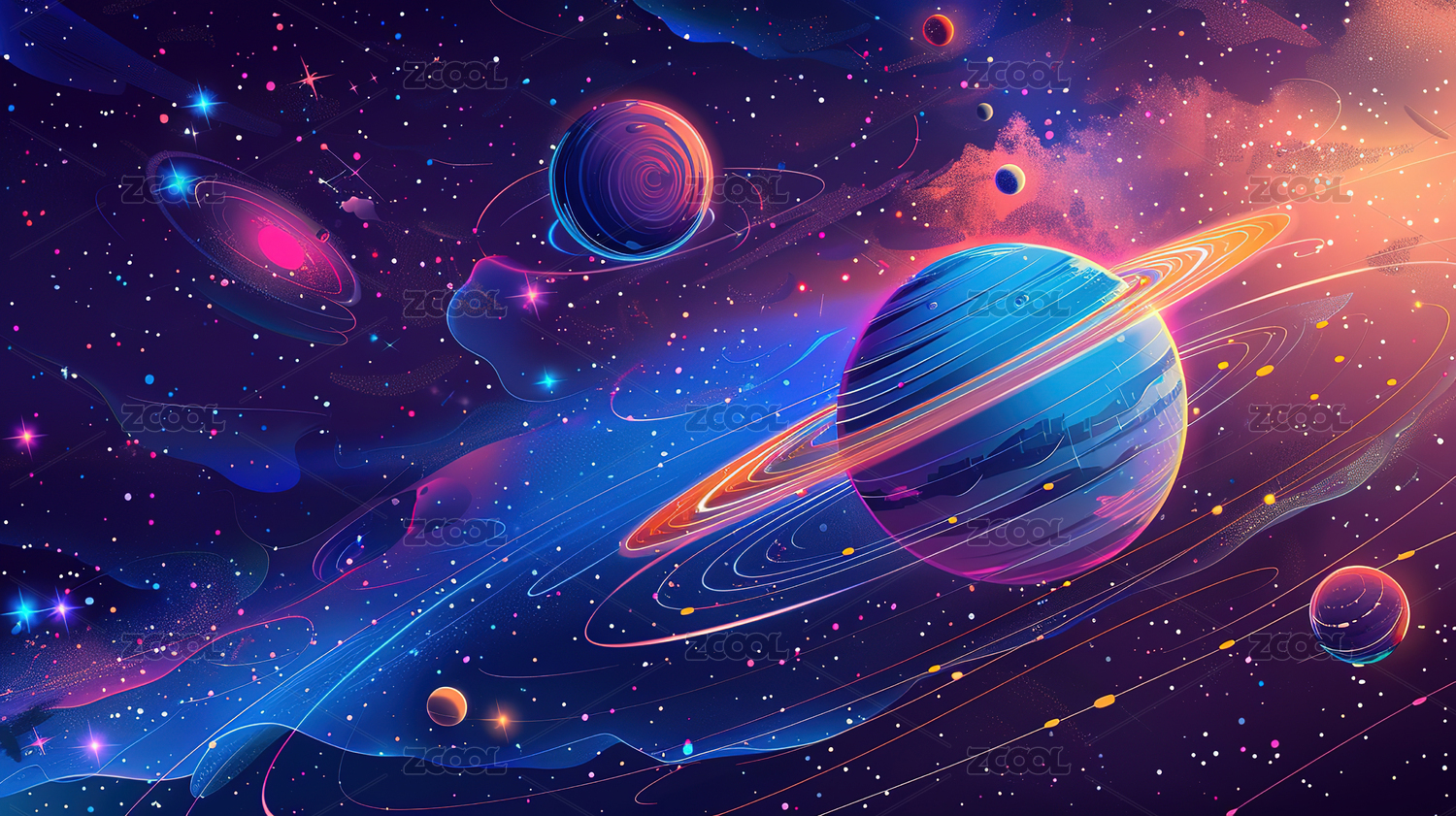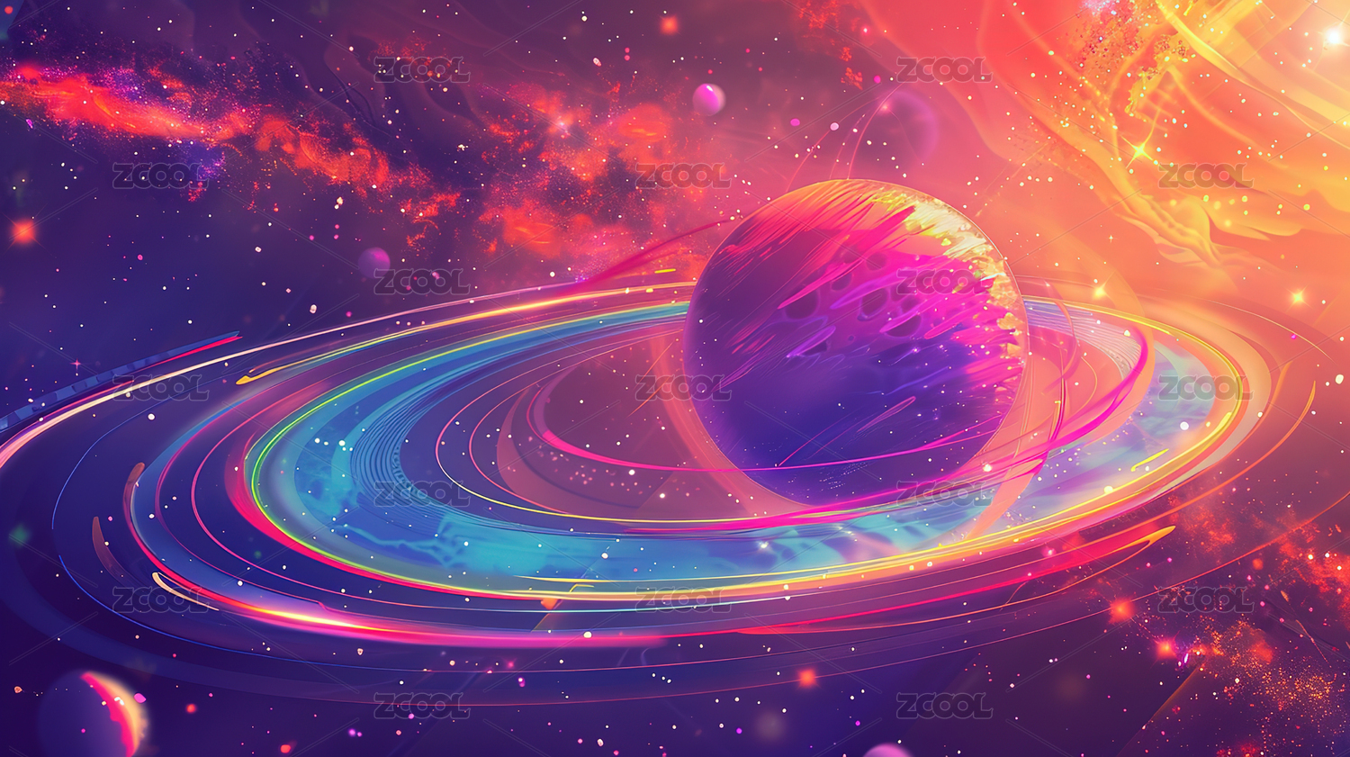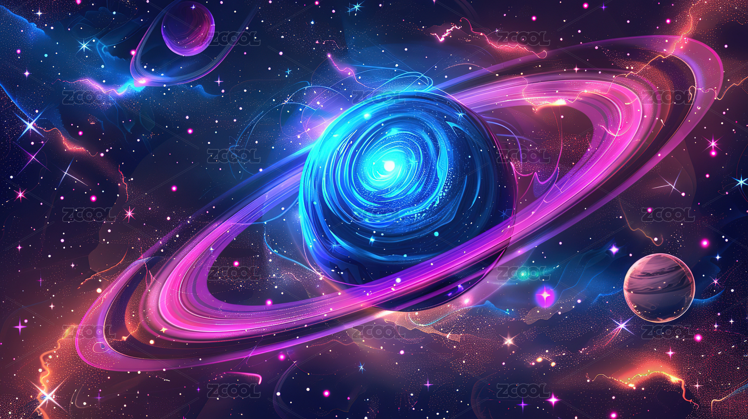行星宇宙漩涡星球星空未来科技概念插画背景