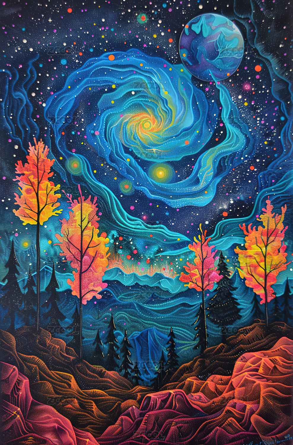 流动,液体,自然,水,艺术,彩色,星空,树木