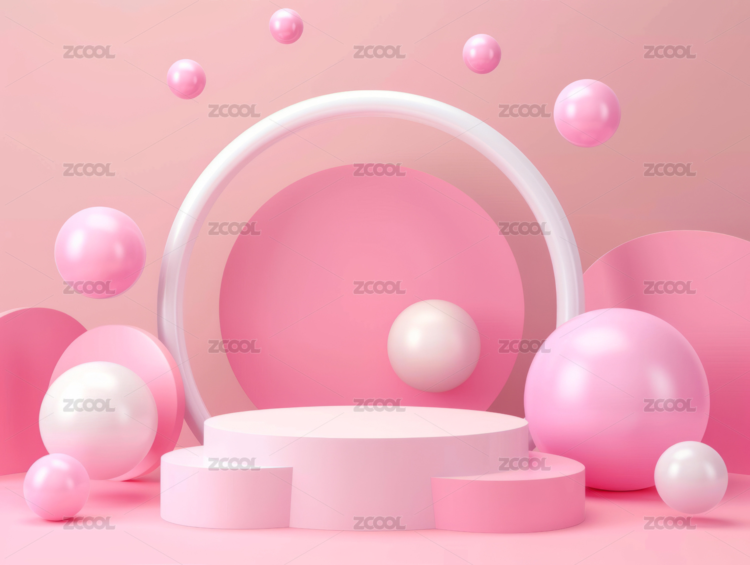 装饰,粉色,形状,展览,圆形,创造力,背景,极简,电商,展台