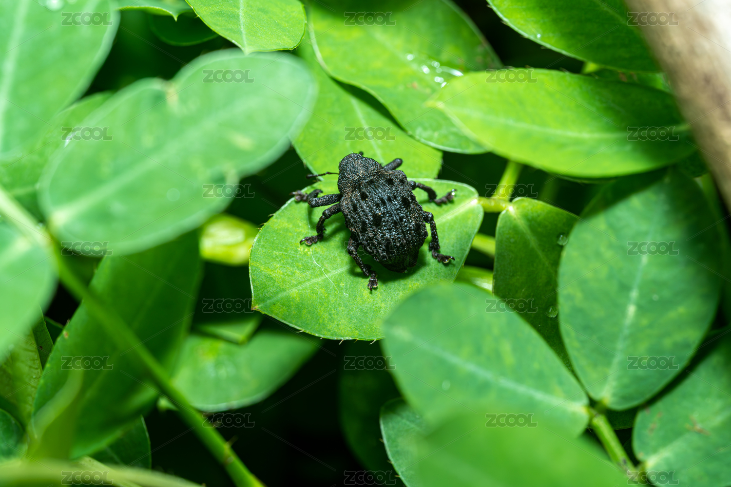 微距下的黑色象鼻虫