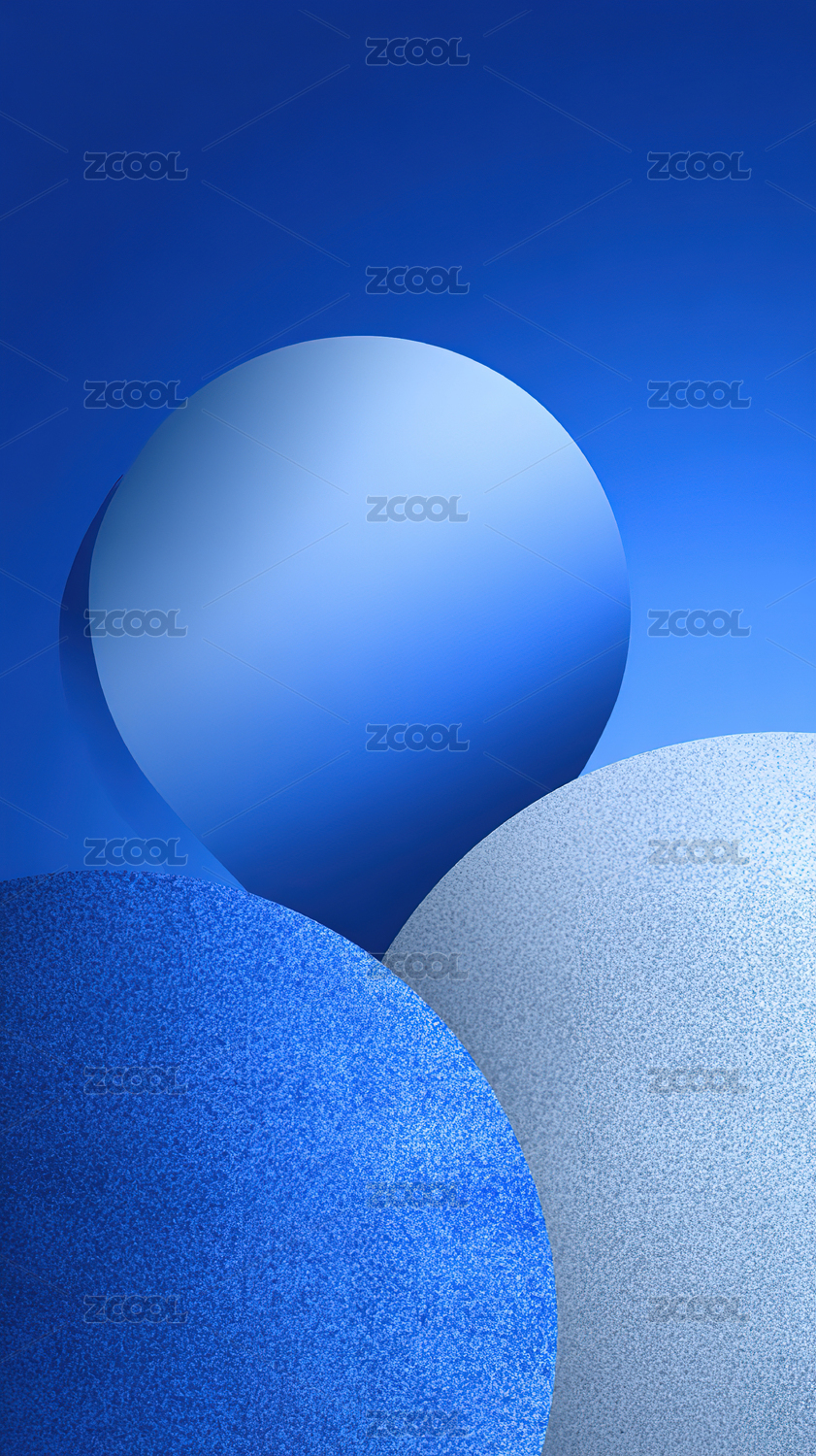 蓝色背景下三个圆形物体