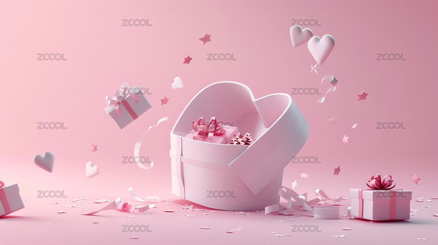 粉色爱心与礼盒图