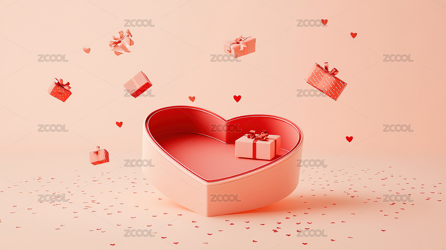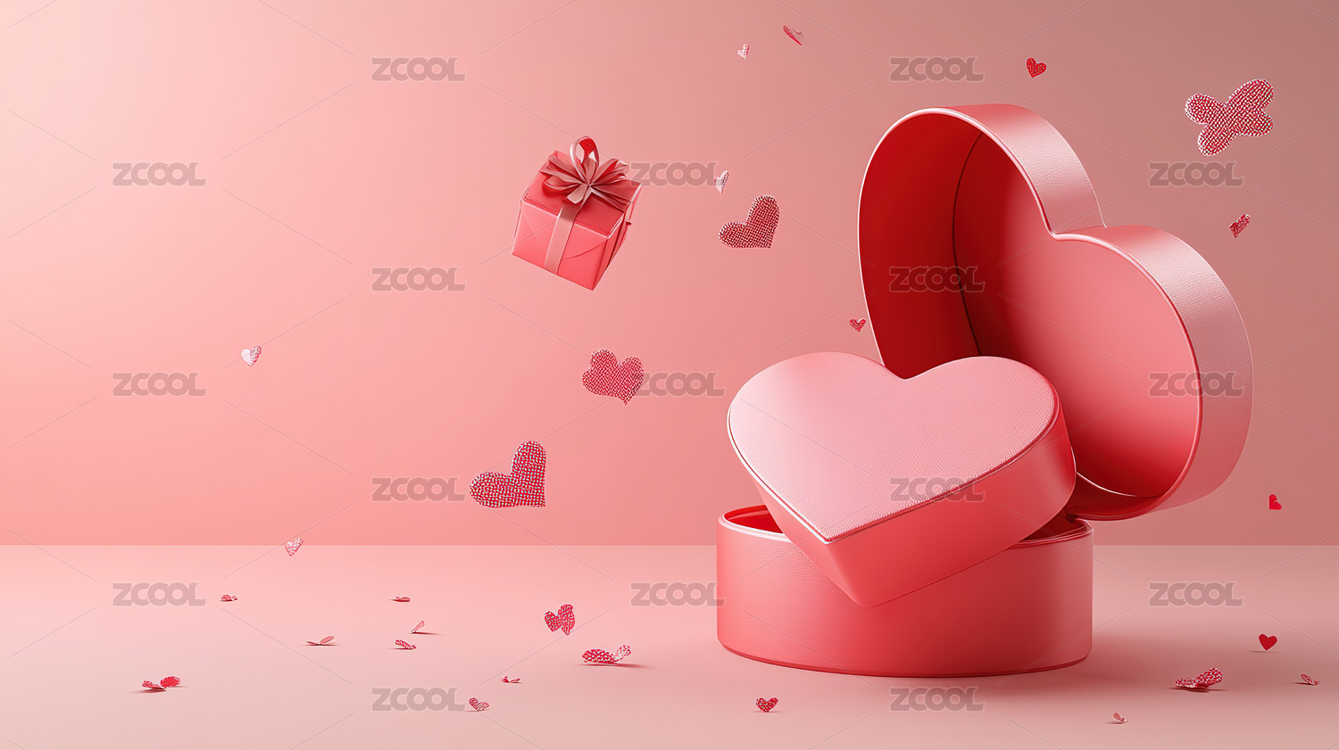 爱心情人节礼盒促销活动情人节场景背景