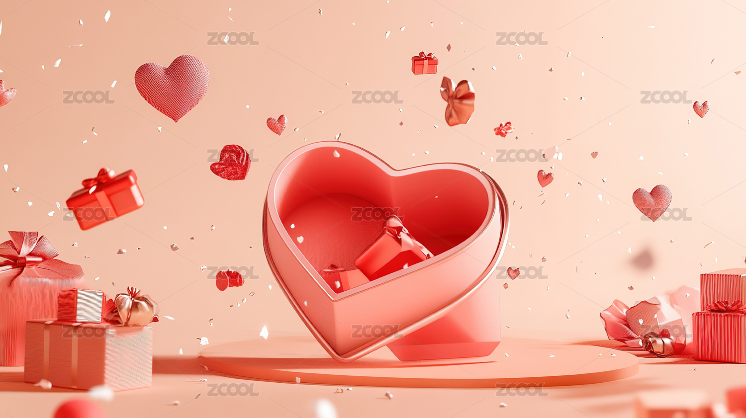 情人节展示台礼品盒520爱心背景留白