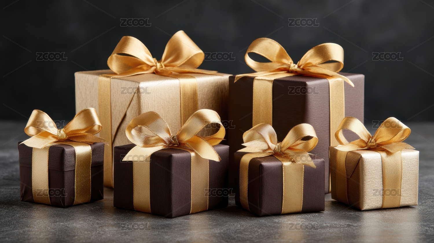金色丝带装饰的巧克力色礼物