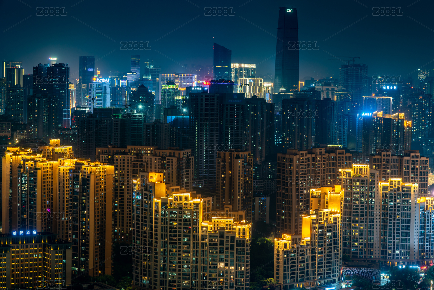 四川成都攀成钢片区高层住宅建筑风光夜景