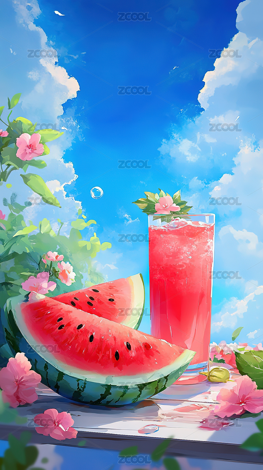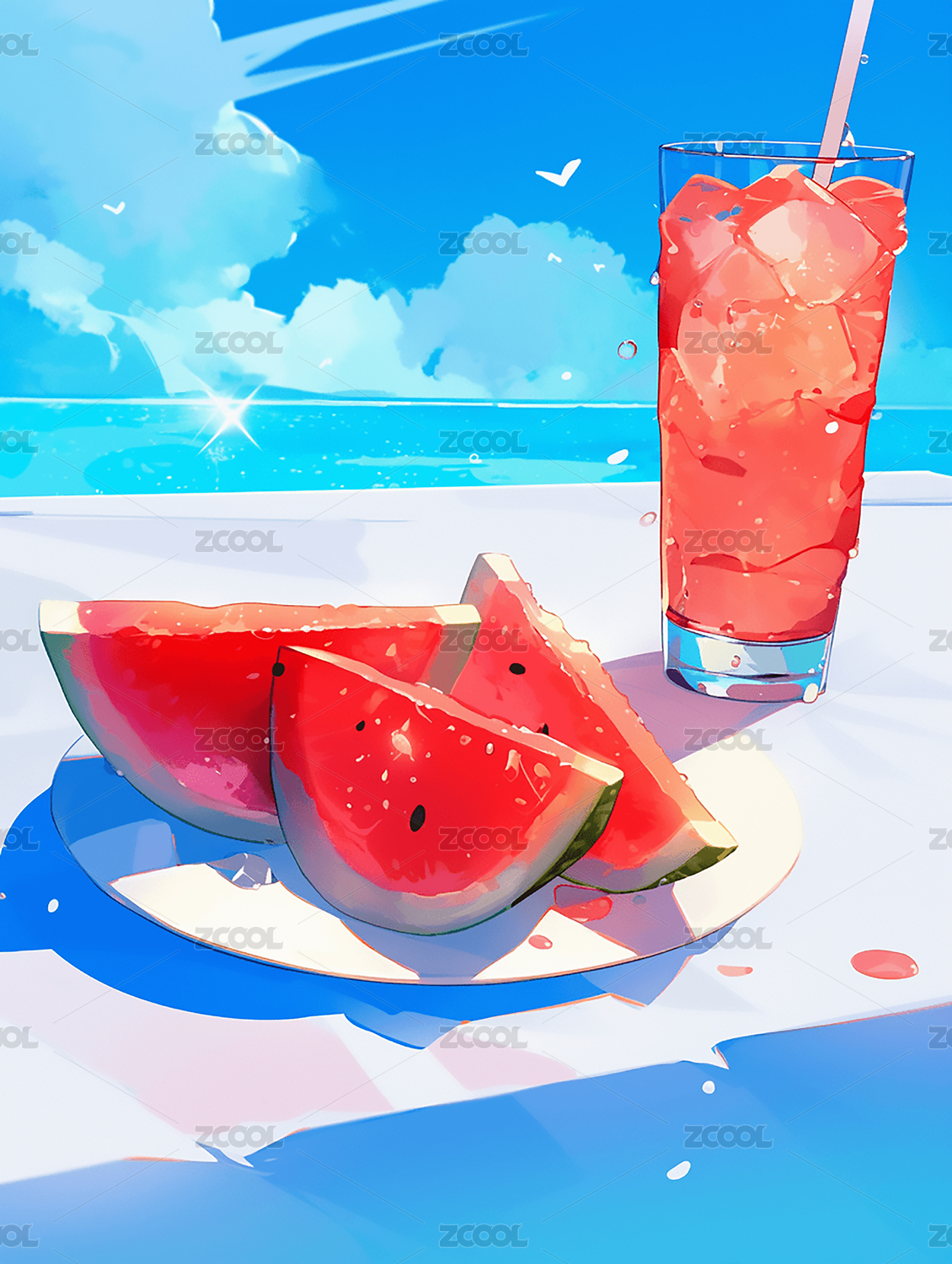 红色,清新,冰块,果汁,水果,夏天,西瓜
