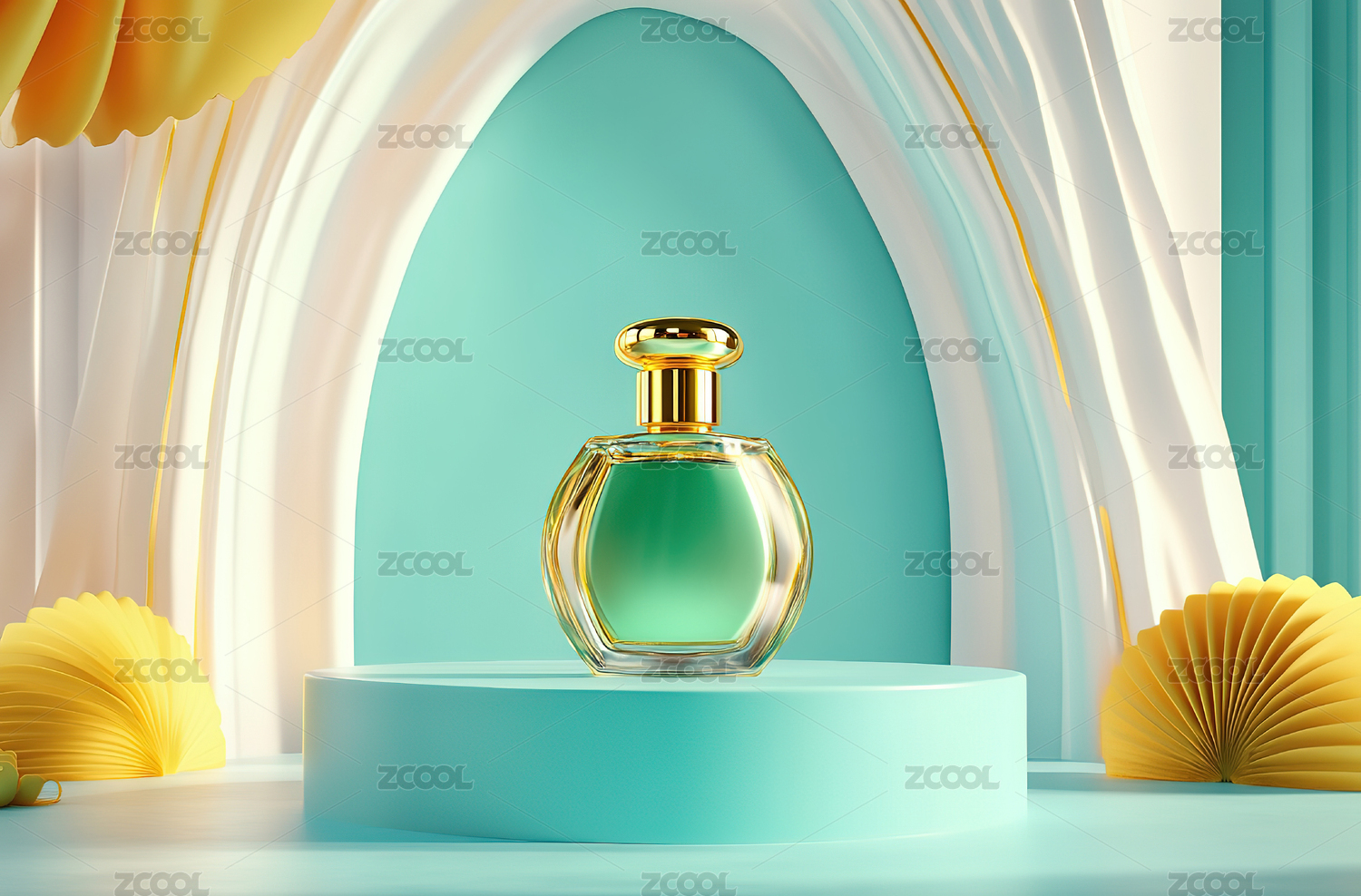 香水瓶展示在柔和渐变背景下