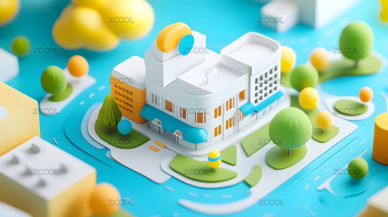 壁纸,背景,梦幻,三维,立体,3D,城市,房屋,建筑,黄色