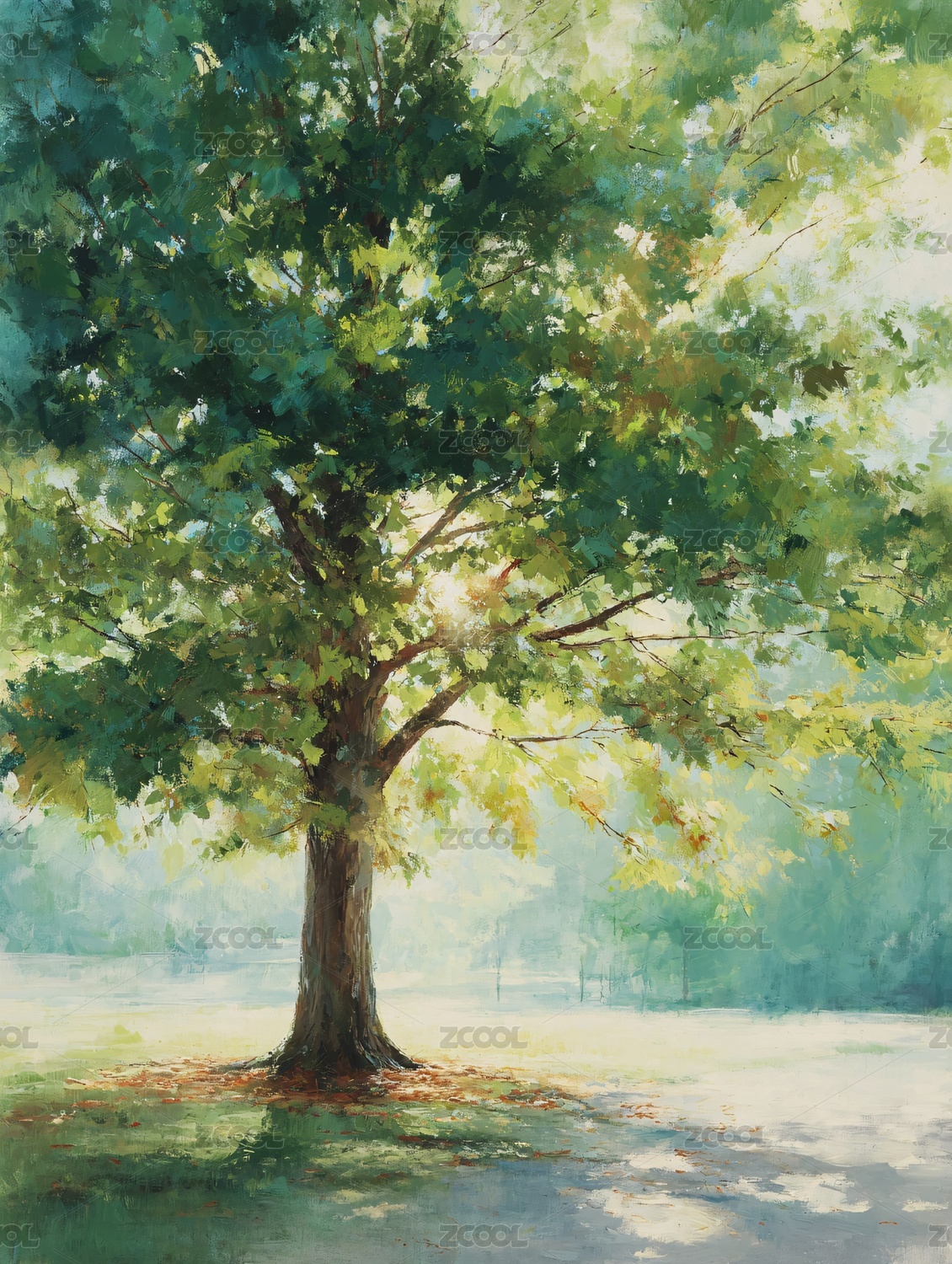 河畔树影风景画