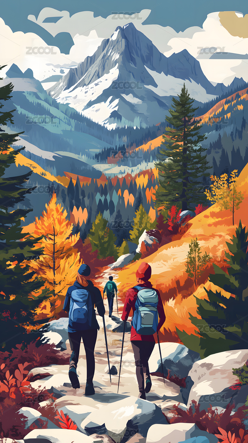 草坪,草原,插画,禅意,登山,度假,花,渐变,节气,流水
