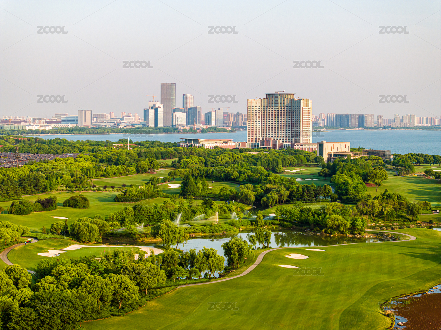 中国湖北武汉光谷驿山高尔夫球场航拍