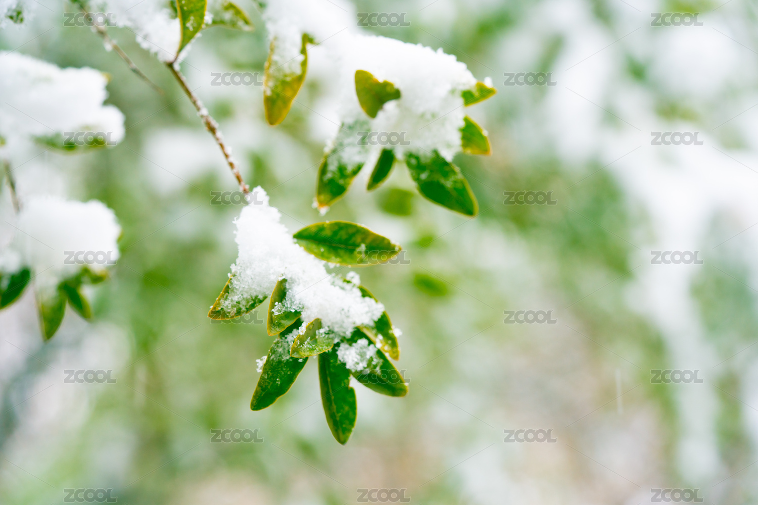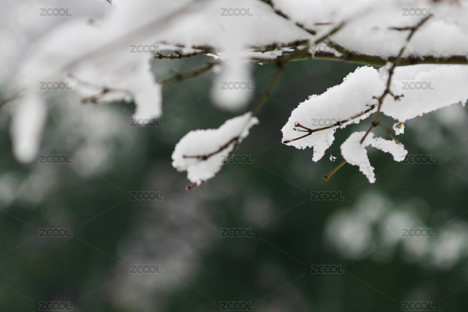 冬季下雪天树林中植物的枝叶上积满了厚厚雪