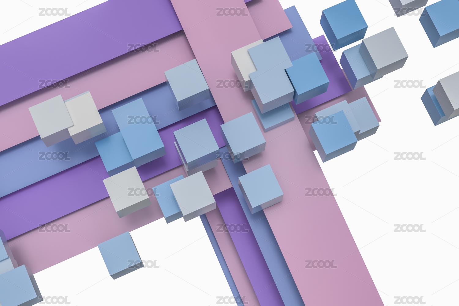 粉色蓝色白色的不规则方块构成的抽象图形