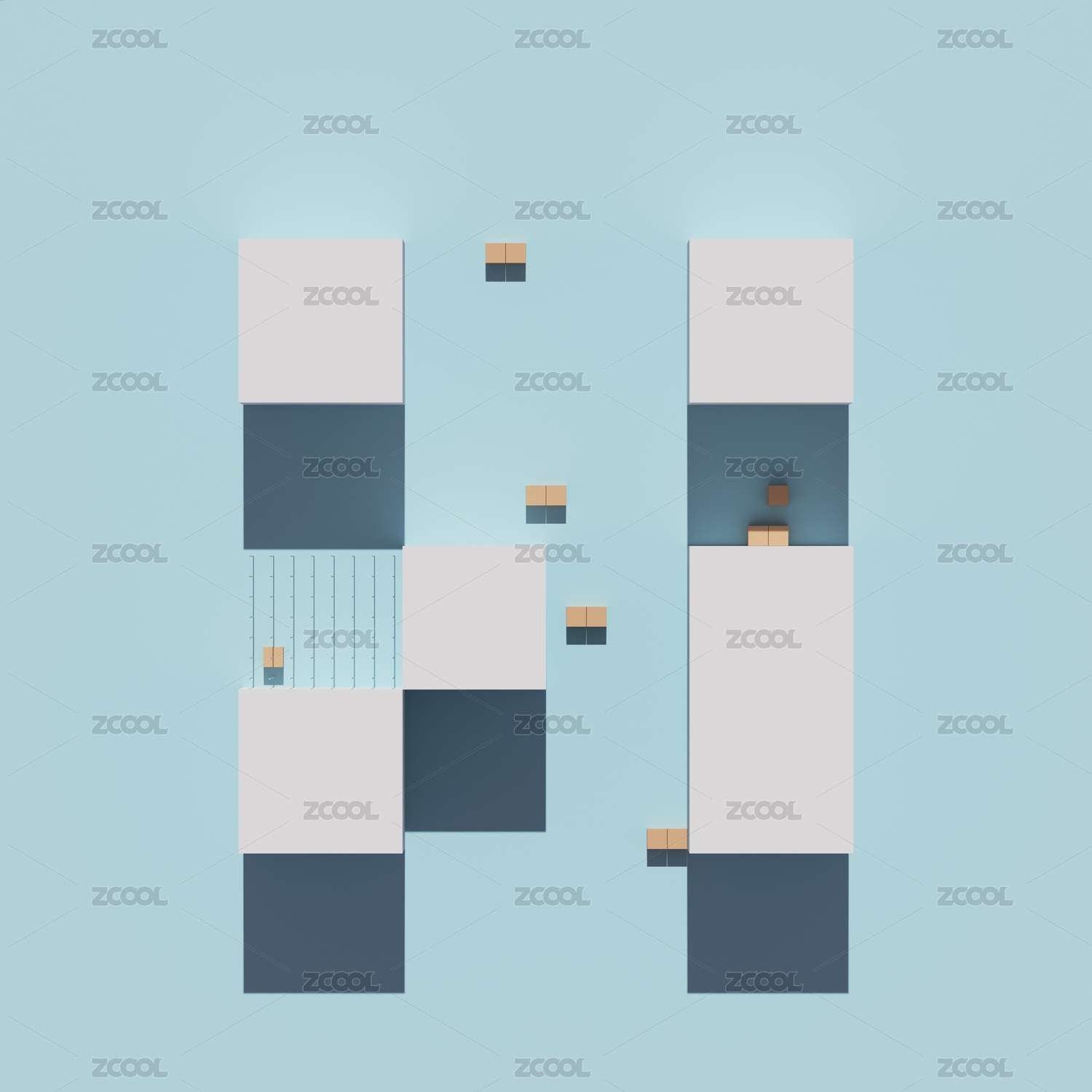 抽象方块几何体3D渲染