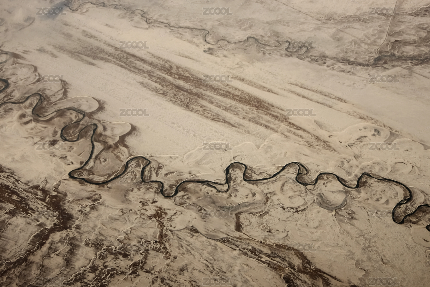 航拍冰冻的河流